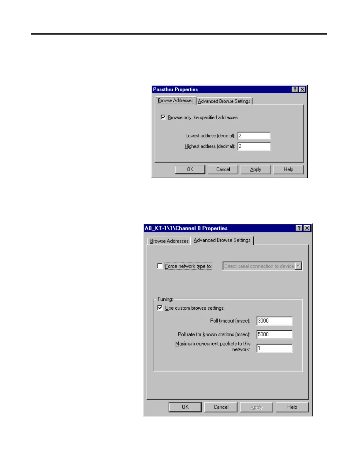 browse settings box and enter 1 for the Maximum concurrent packets to