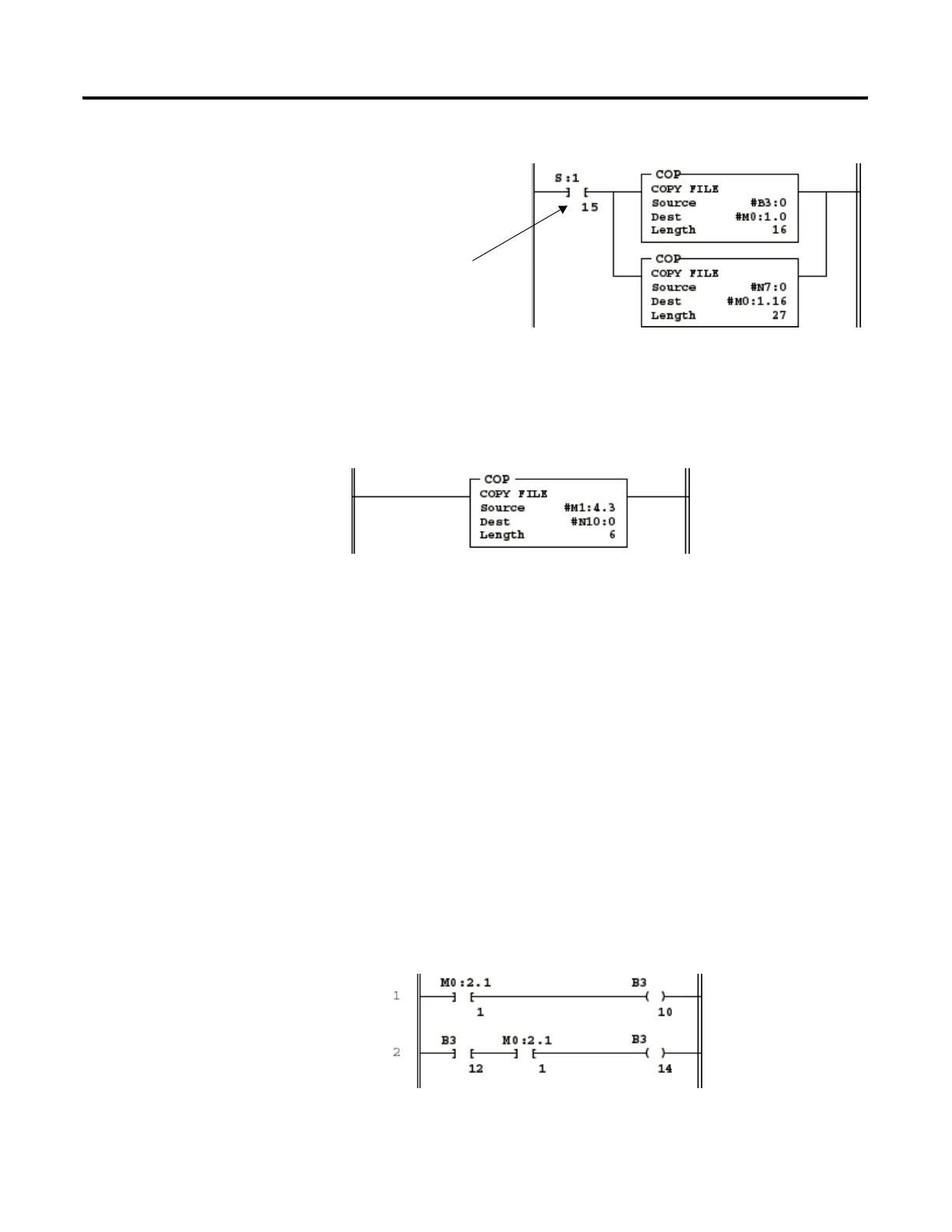 XIC instructions in rungs 1 and 2 are addressed to the M0 data file. Each of these instructions