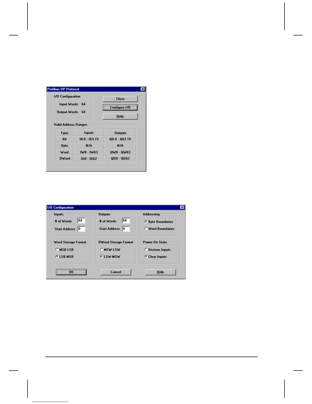 When the OK button is clicked, the following Profibus DP Protocol dialog box will appear. The valid