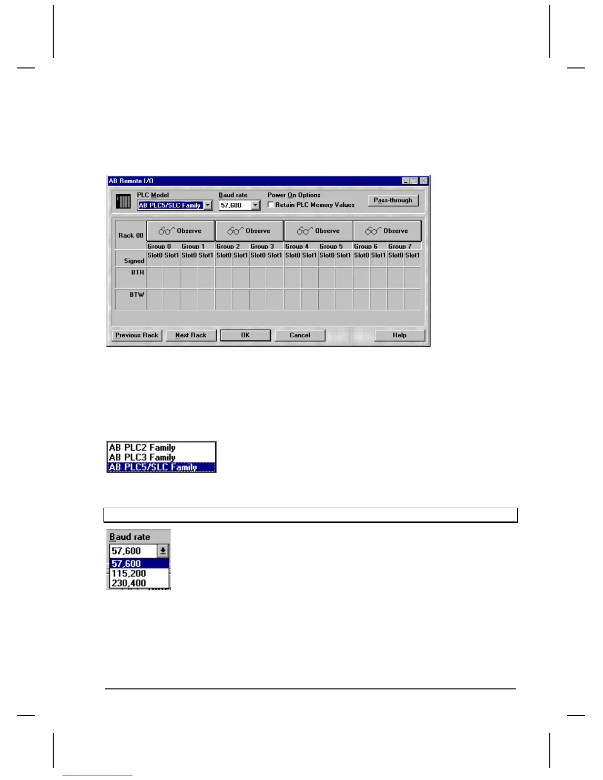 Select the PLC Model from the list box located at the top of the AB Remote I/O dialog box. Different