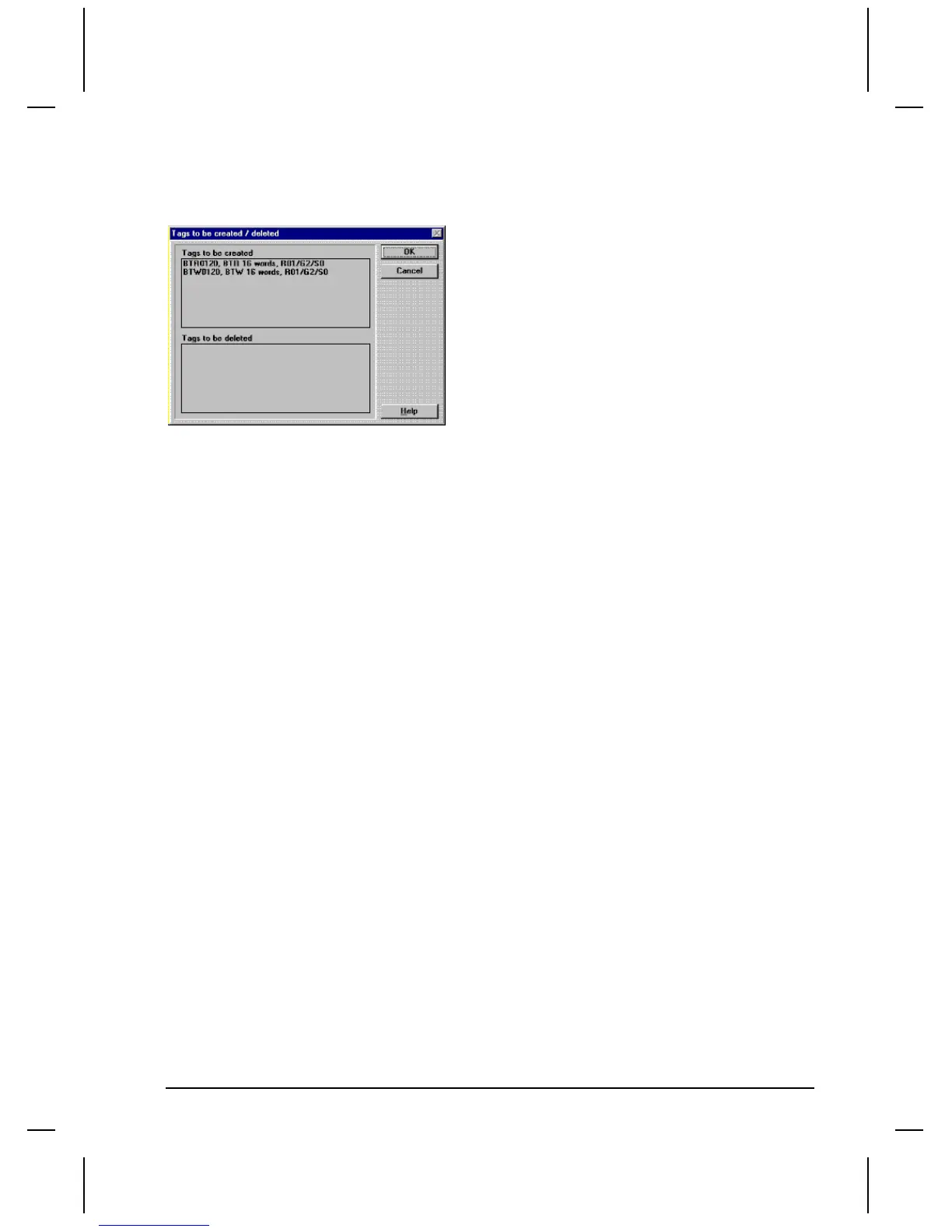 • click OK. Verify the Tag names, transfer mode and number of words.