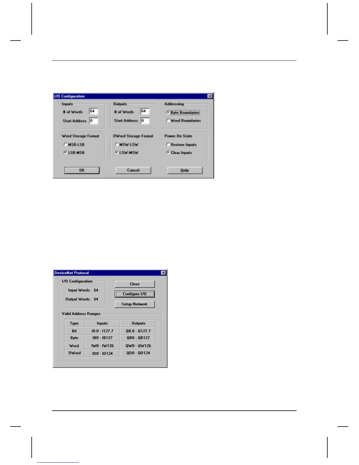 When the OK button is clicked, the following DeviceNet Protocol dialog box will appear. The valid