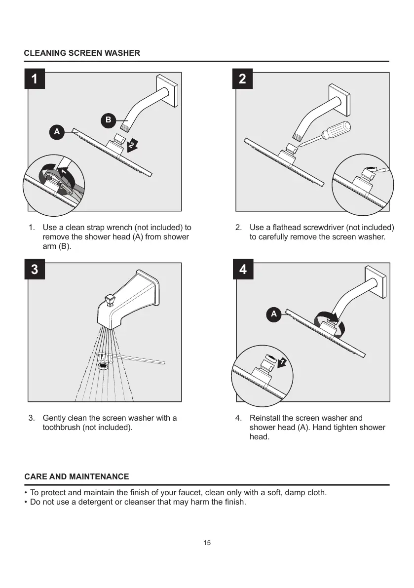 • To protect and maintain the finish of your faucet, clean only with a soft, damp cloth.