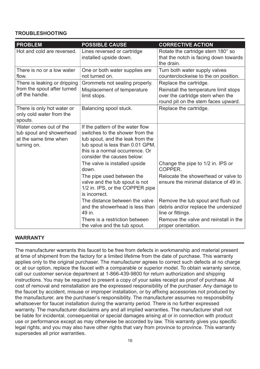 whatsoever for faucet installation during the warranty period. There is no further expressed