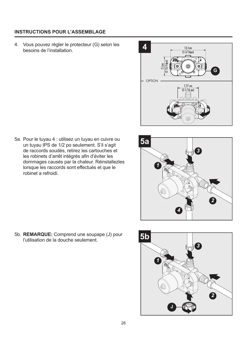 5b. REMARQUE: Comprend une soupape (J) pour