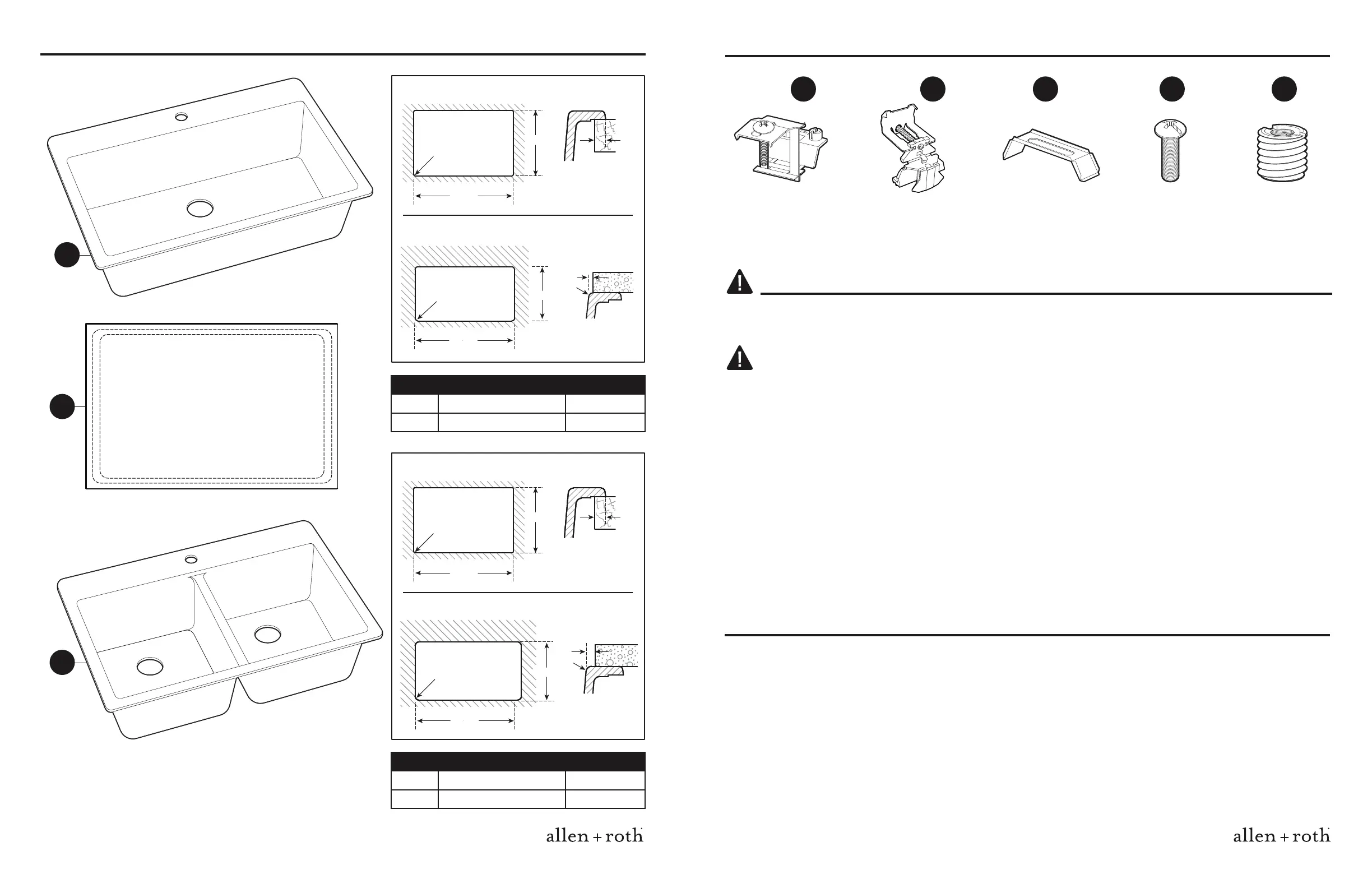 • Use caution when installing the sink. There is a risk of crushing your ngers when inserting the sink