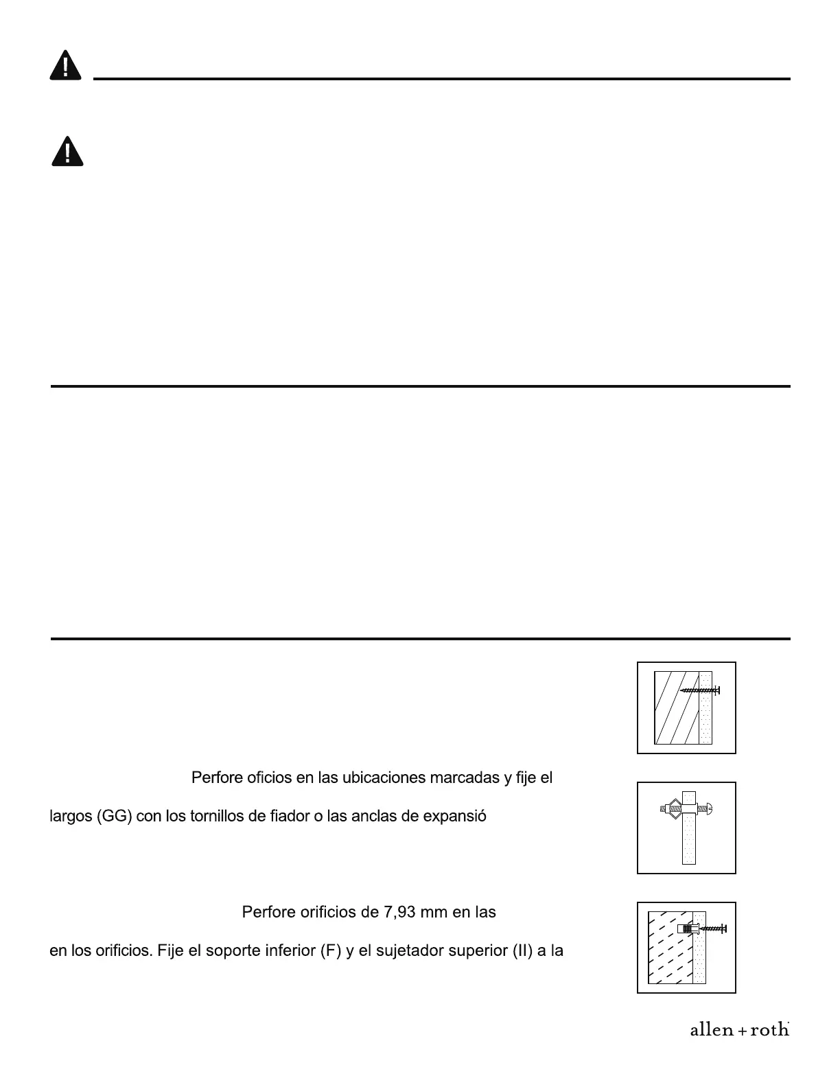soporte inferior (F) y el sujetador superior (II) a la pared usando los tornillos