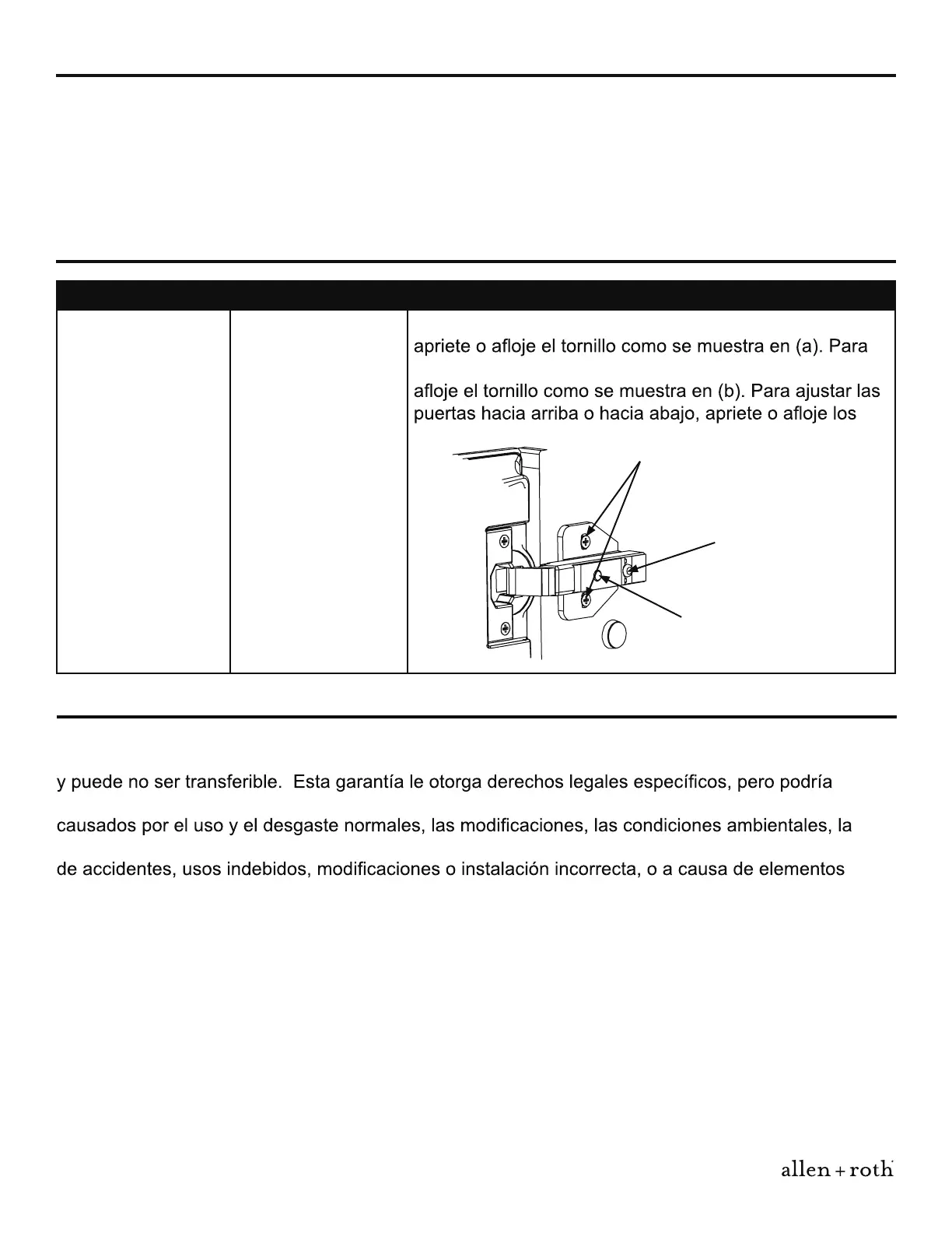 ajustar las puertas hacia dentro o hacia fuera, apriete o