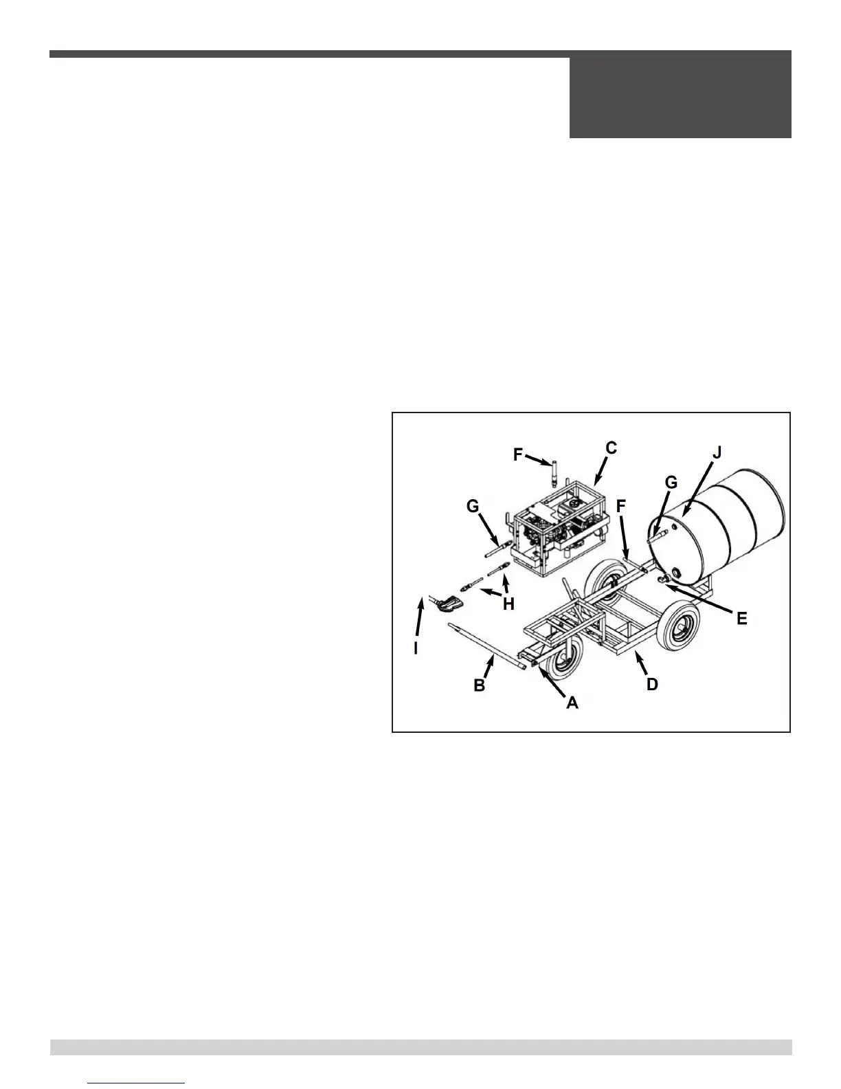 2. Next place the sprayer (C) on the tow cart (D). Use