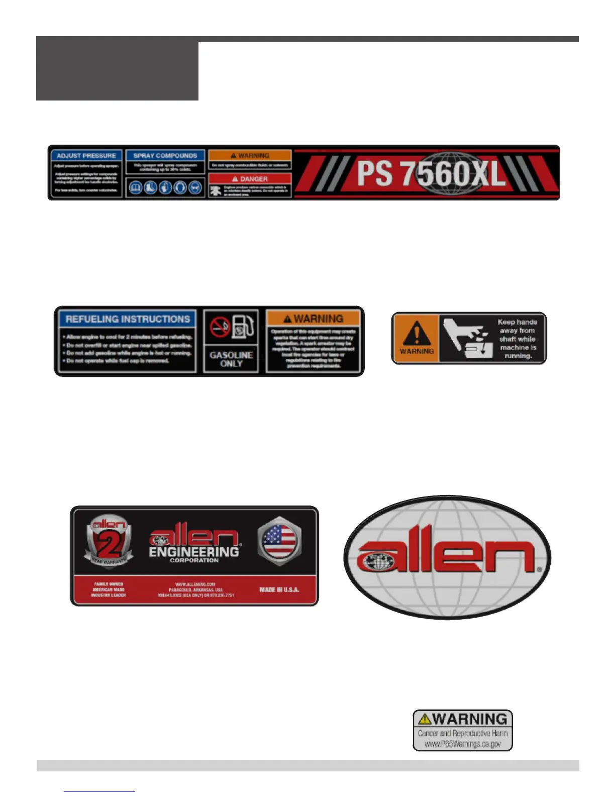 SPRAYER WARNING / BRAND DECAL