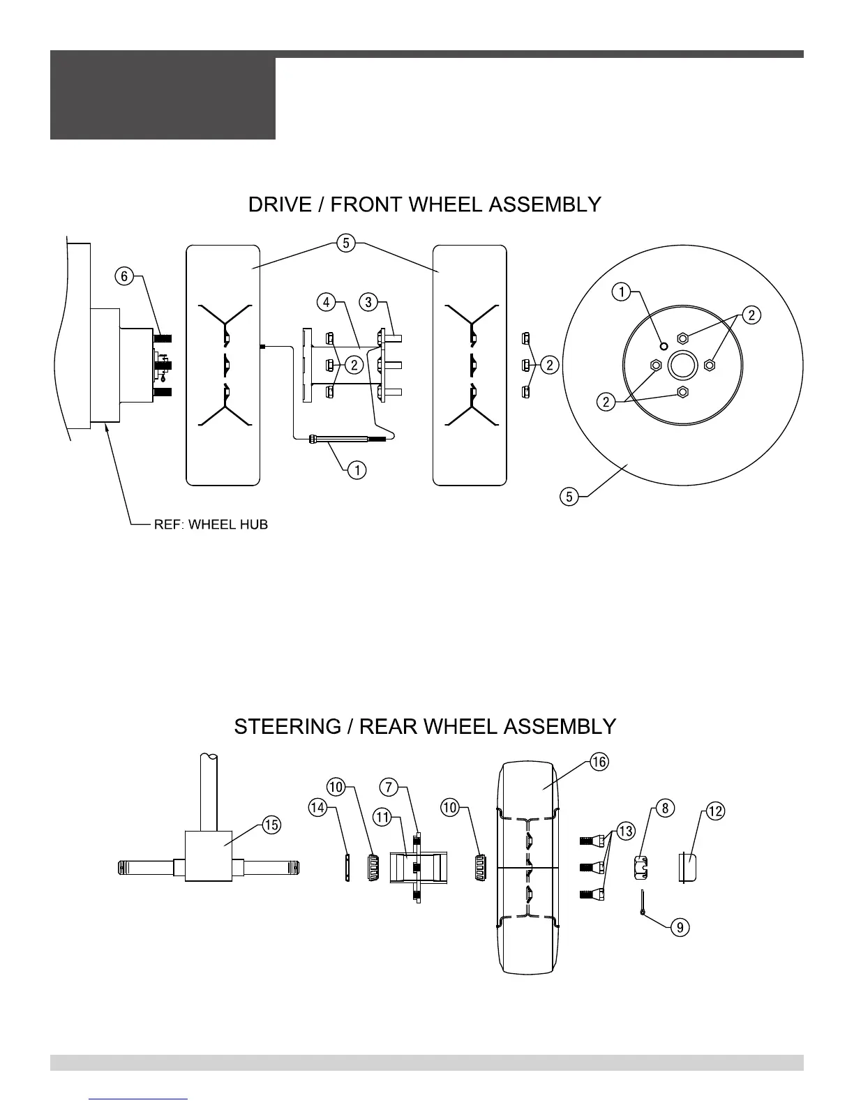 allen AR21 - Wheel Assemblies, Illustration; Drive;Front Wheel Assembly; Steering;Rear Wheel Assembly