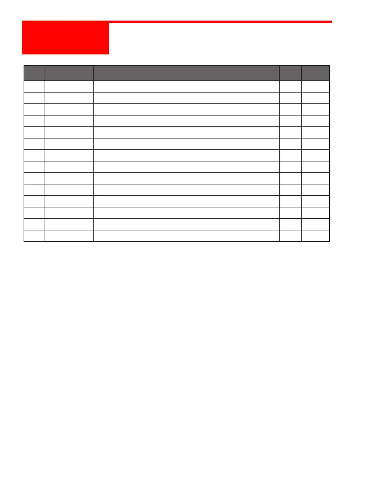 PART NO. DESCRIPTION QTY NOTES