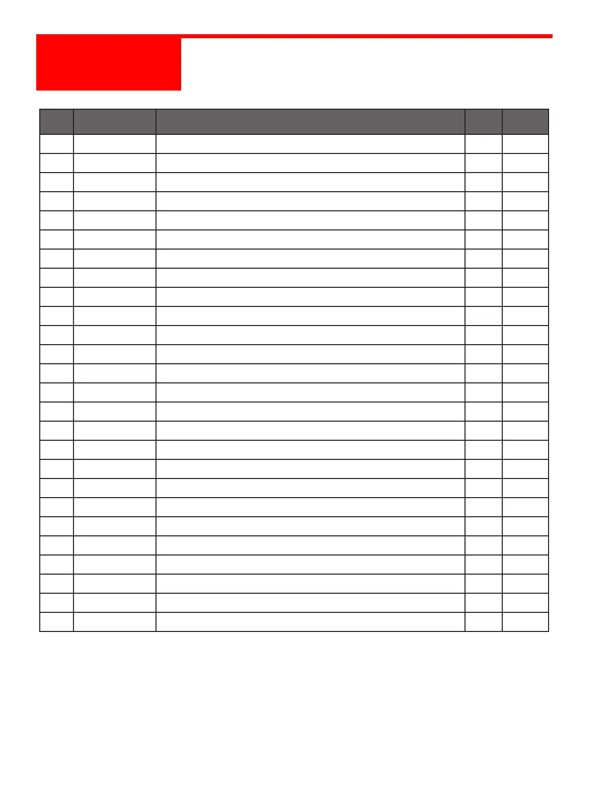 PART NO. DESCRIPTION QTY NOTES