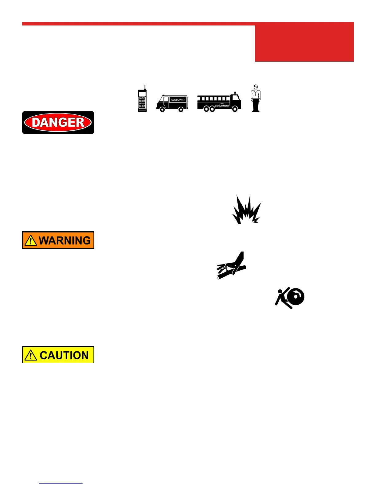 ● NEVER disconnect any emergency or safety devices. These devices are intended for operator safety.