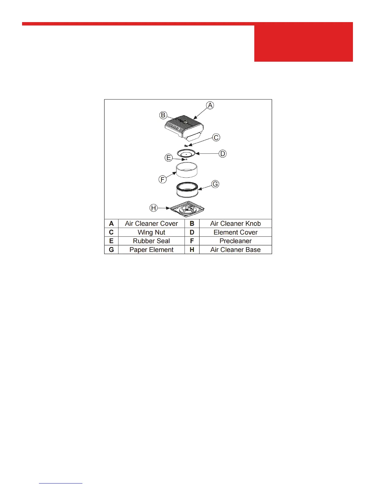 This engine is equipped with a large capacity, dual element air lter—an oiled, foam pre-cleaner sur-