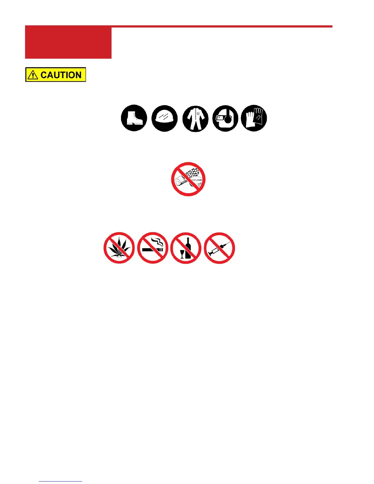 • NEVER operate this equipment under the influence of drugs or alcohol.