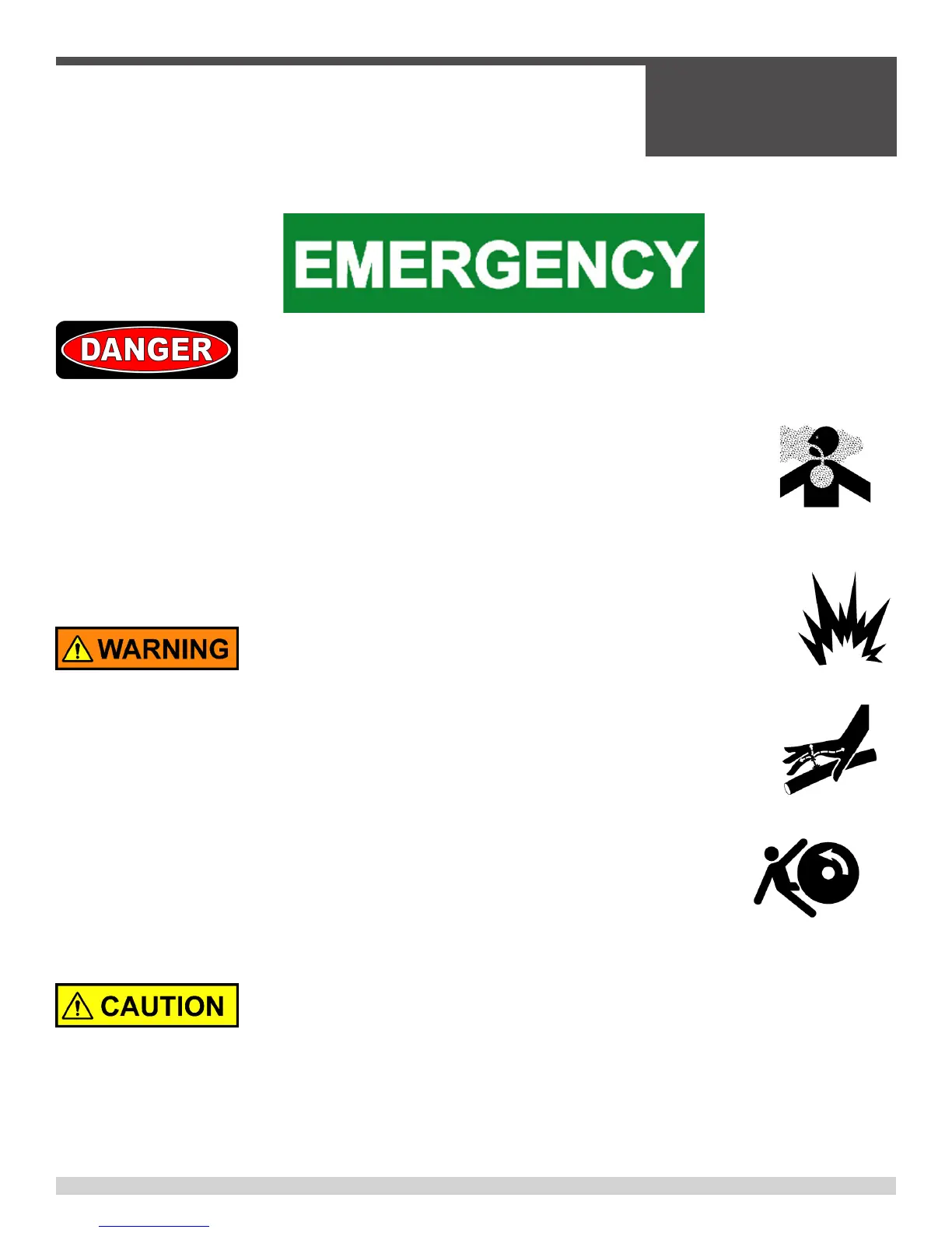 NEVER disconnect any emergency or safety devices. These devices are intended for operator safe-