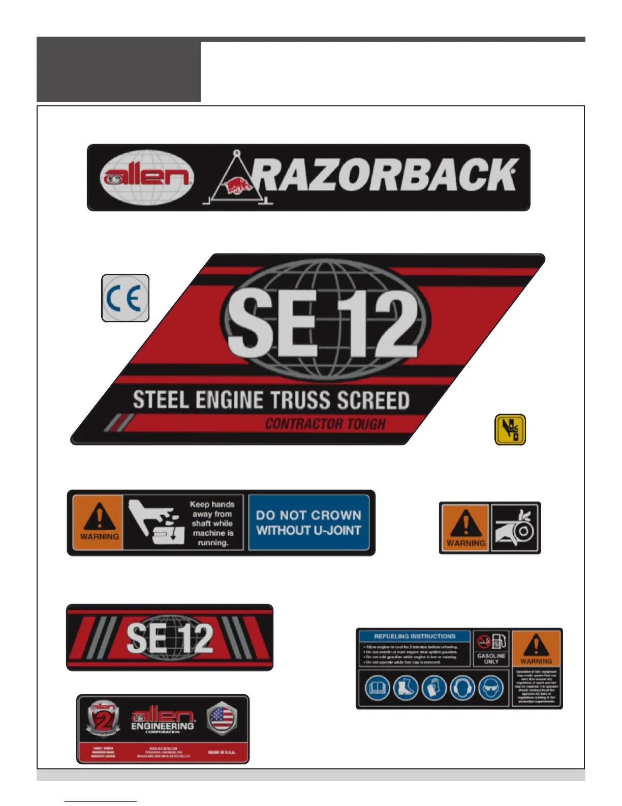 allen SSE12 - Standard SSE12 Screed Decals