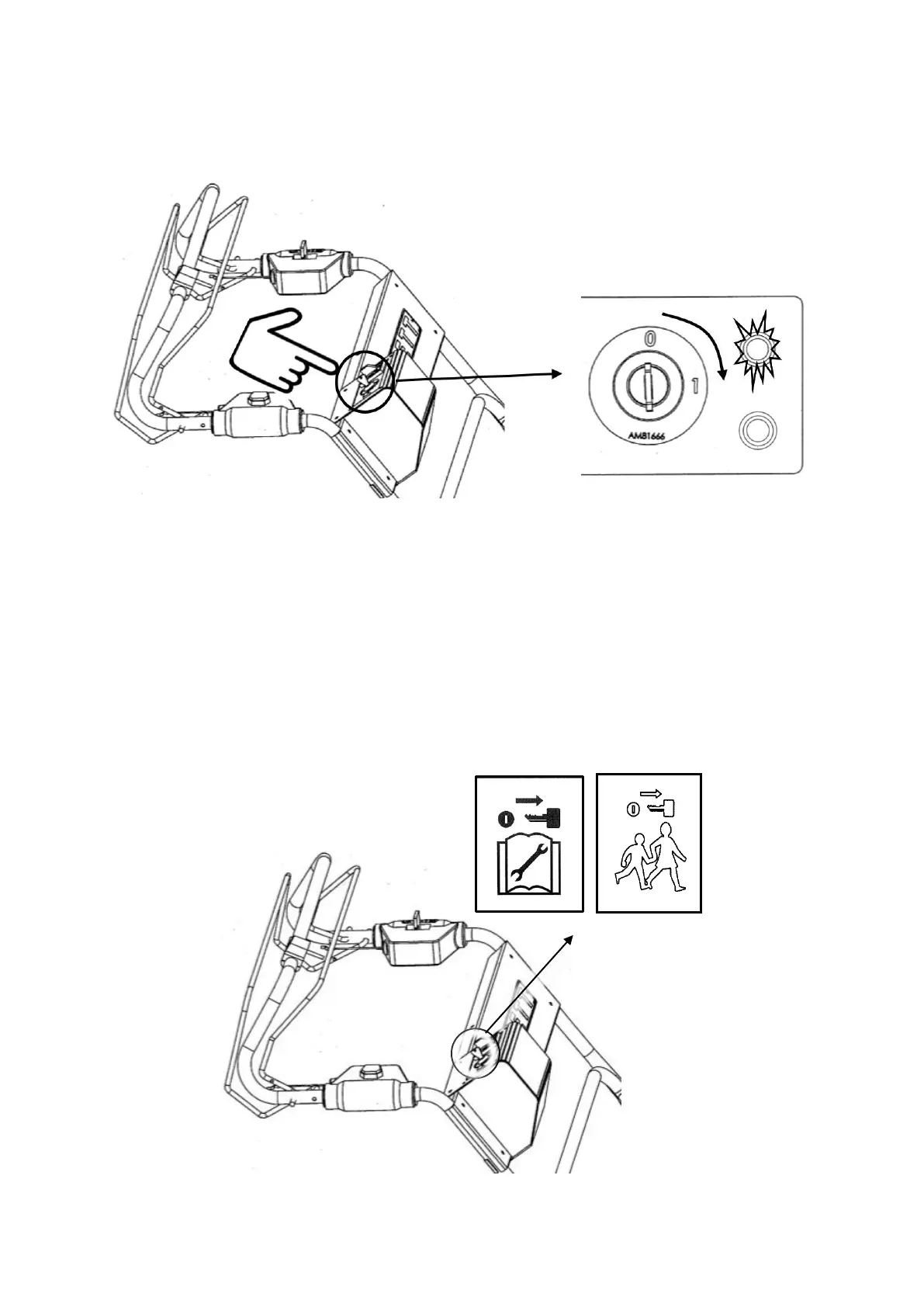 Turn the key switch / disabling device clockwise to position “1”. The red LED will illuminate. An