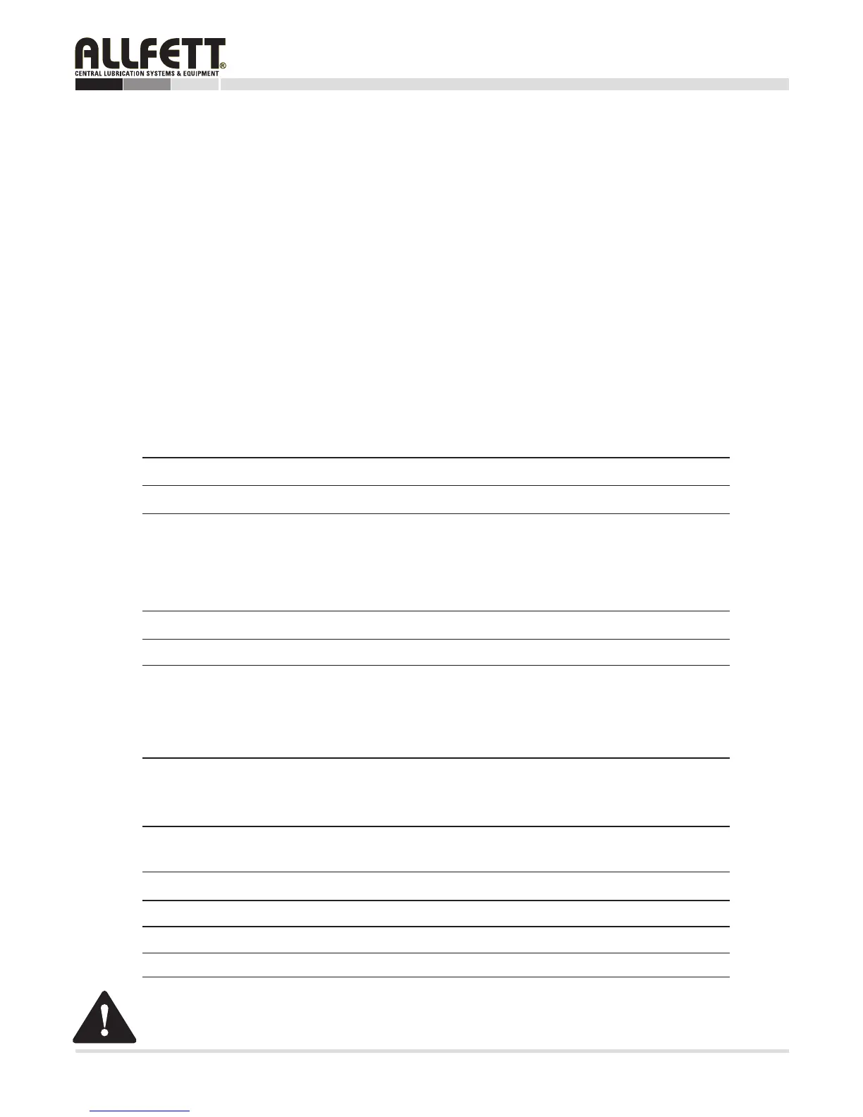 level of grease. In case the pump is installed so that operator cannot see the level of grease the ALLFETT