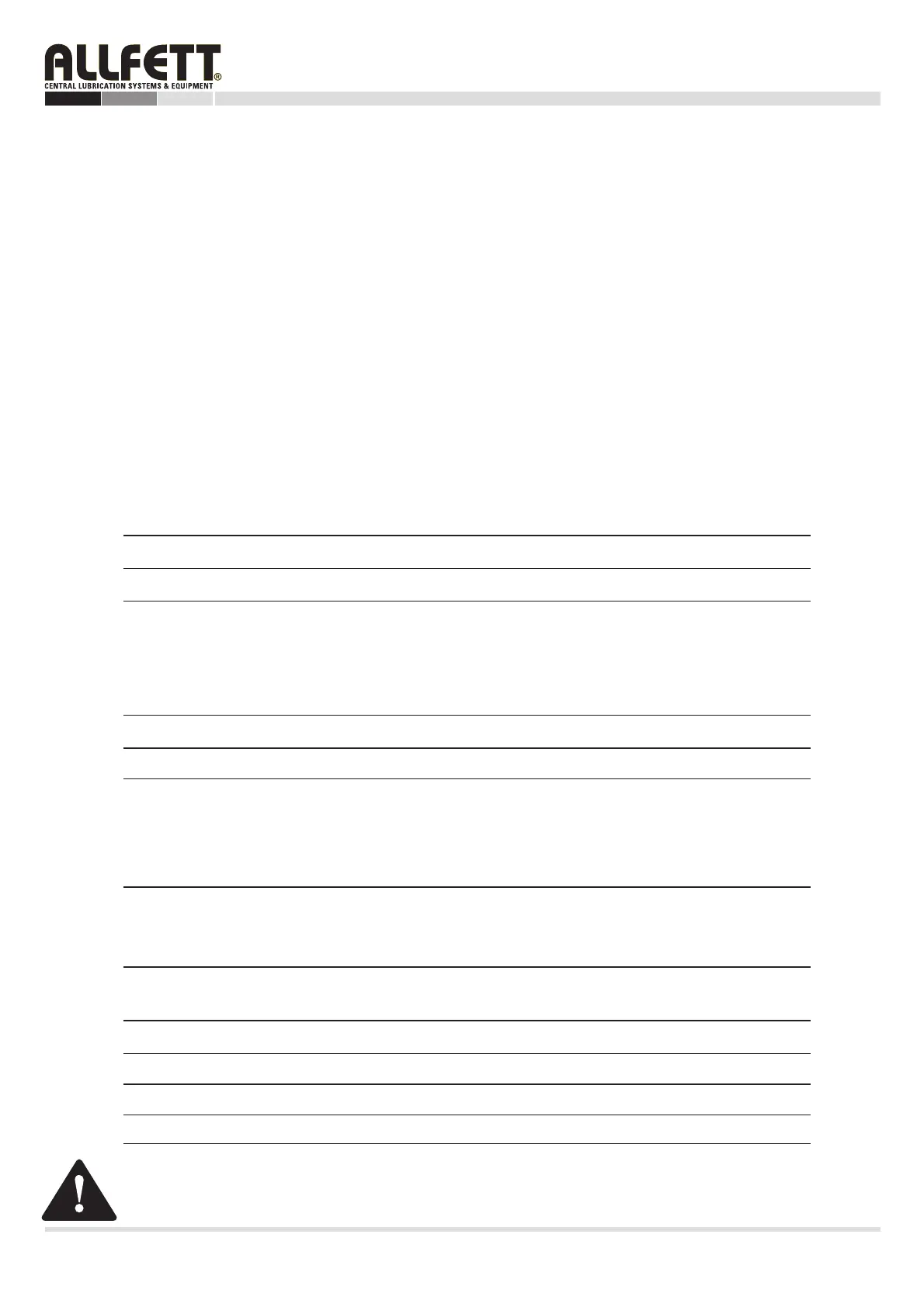 level of grease. In case the pump is installed so that operator cannot see the level of grease the ALLFETT