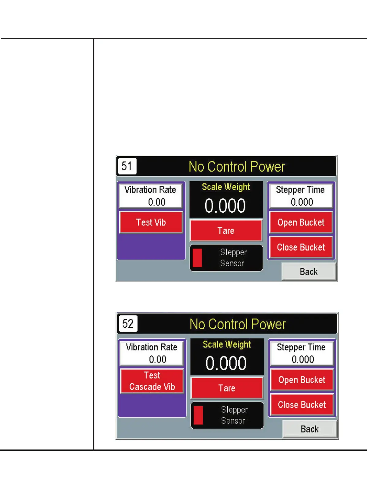 3. Press TEST CASCADE VIBRATOR to operate the additional cascade vibrator that