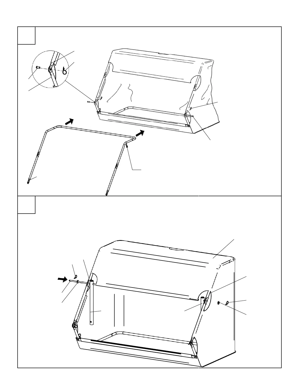 los pasadores de horquilla (44) a través de los tubos del bastidor superior (39) y los tubos del bastidor