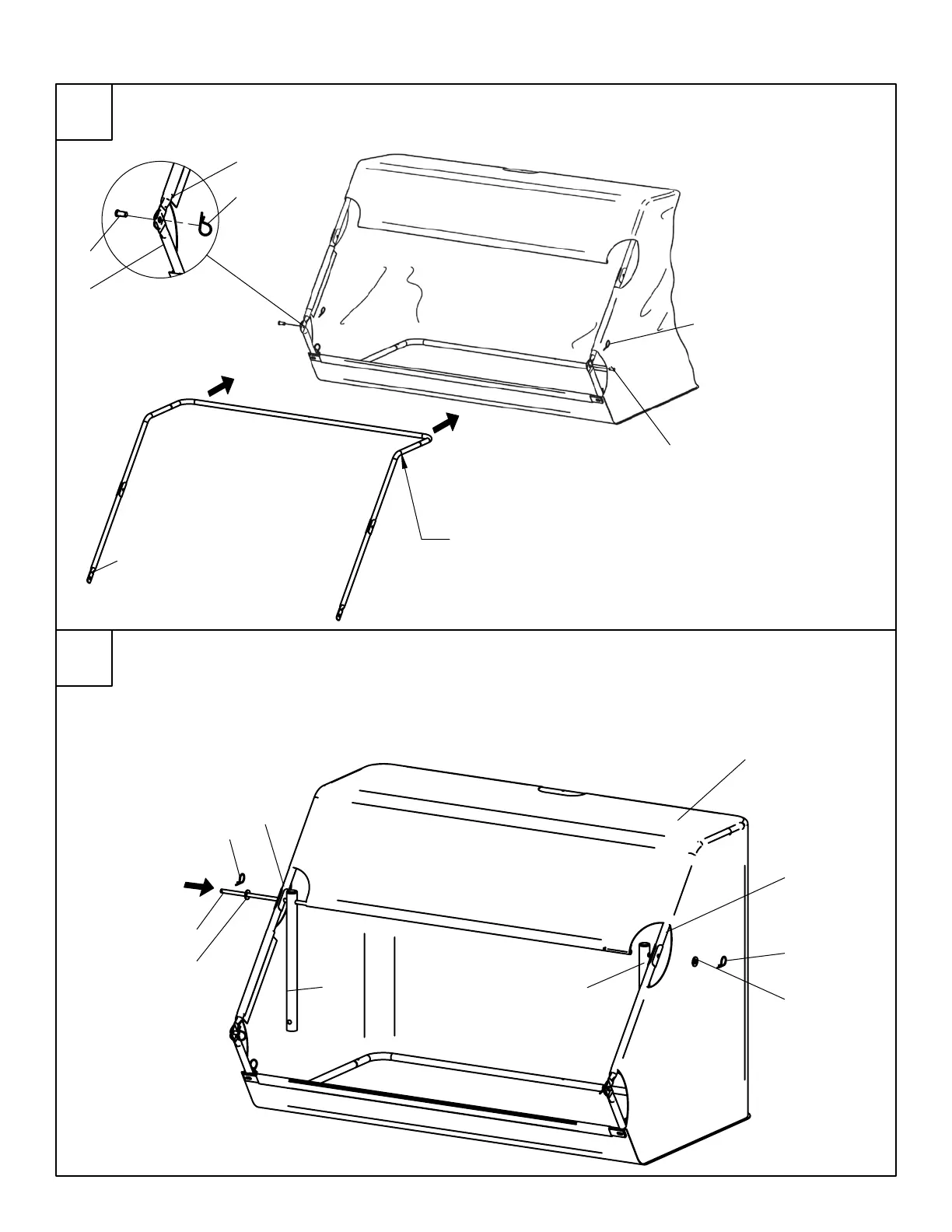 First, Place top frame assembly into Hopper Bag (37). Second, Install