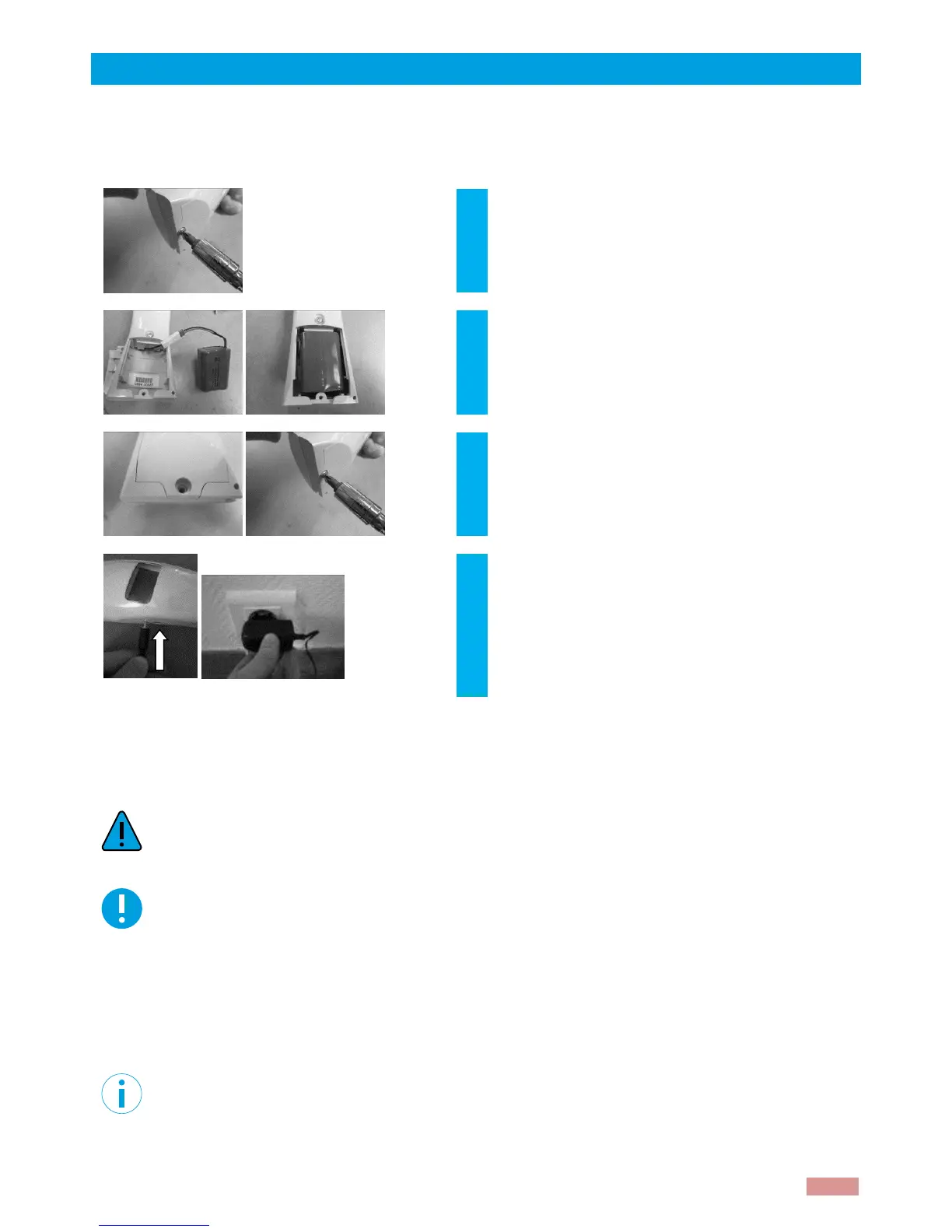 The batteries must be charged indoors only, at temperature between 0° and +35°C.