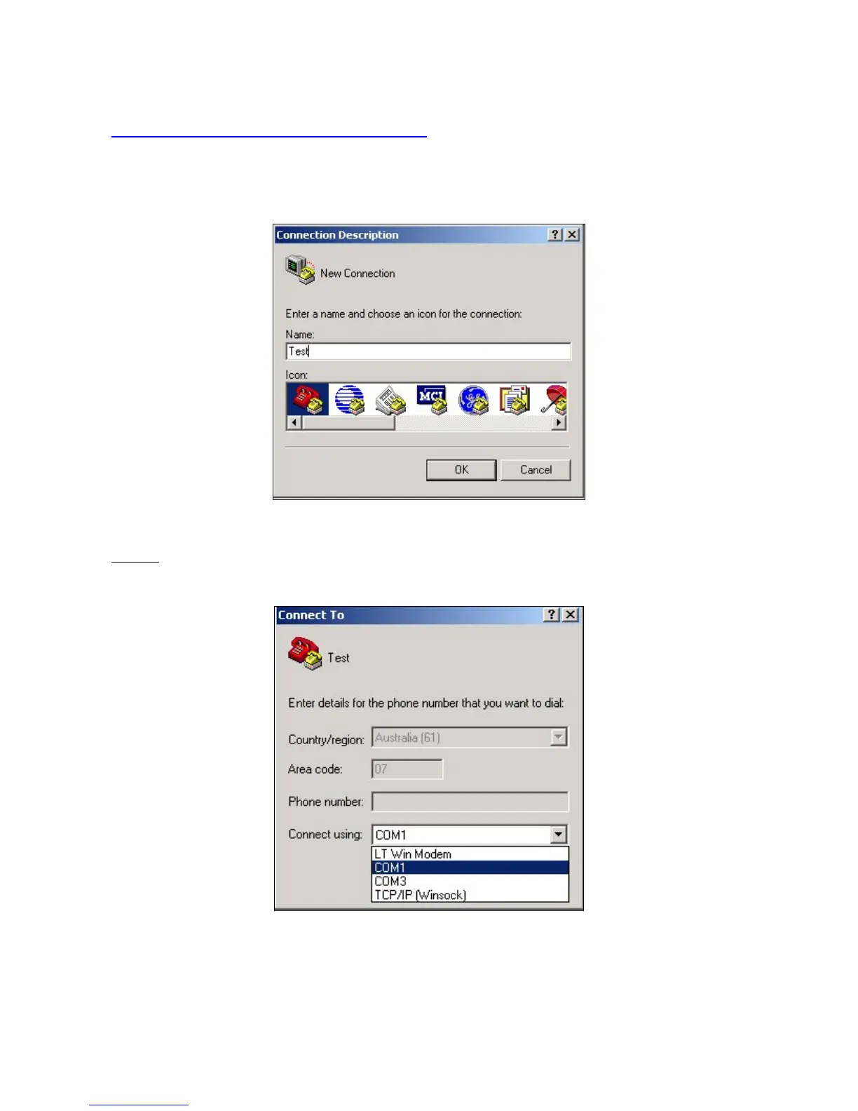 When HyperTerminal® has fully loaded you will be asked to input a name for your