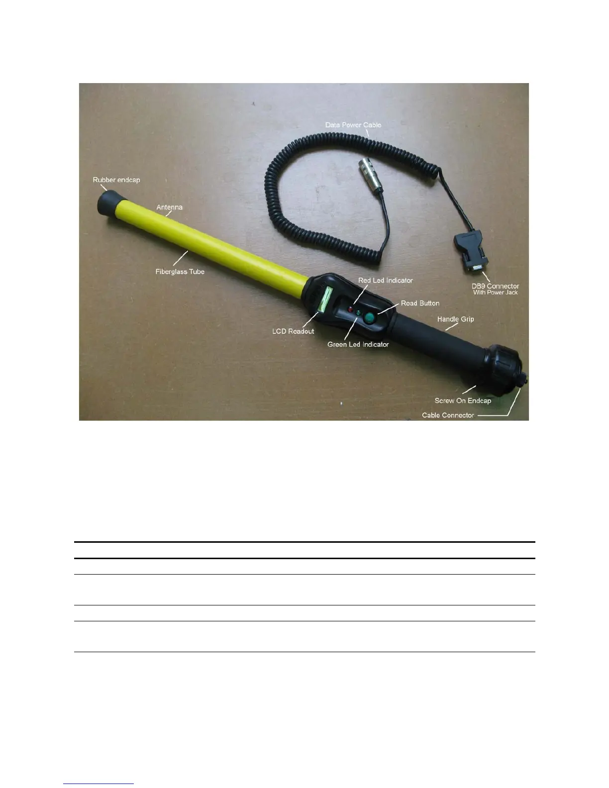 Table 1 - Stick Reader Features and Descriptions of Use