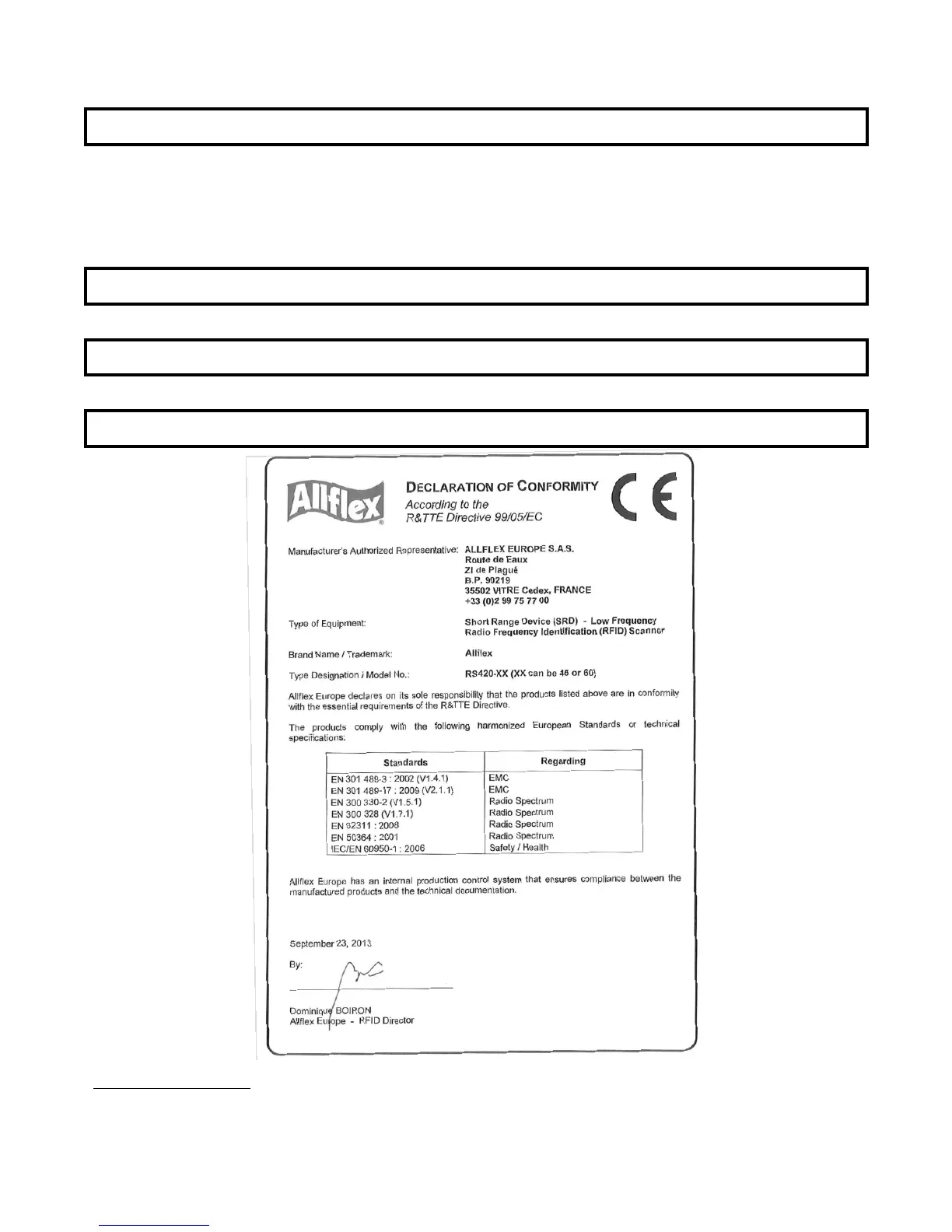 Allflex RS420 - Regulatory Compliance Details; ISO Standards Compliance; FCC ID and CE Marking