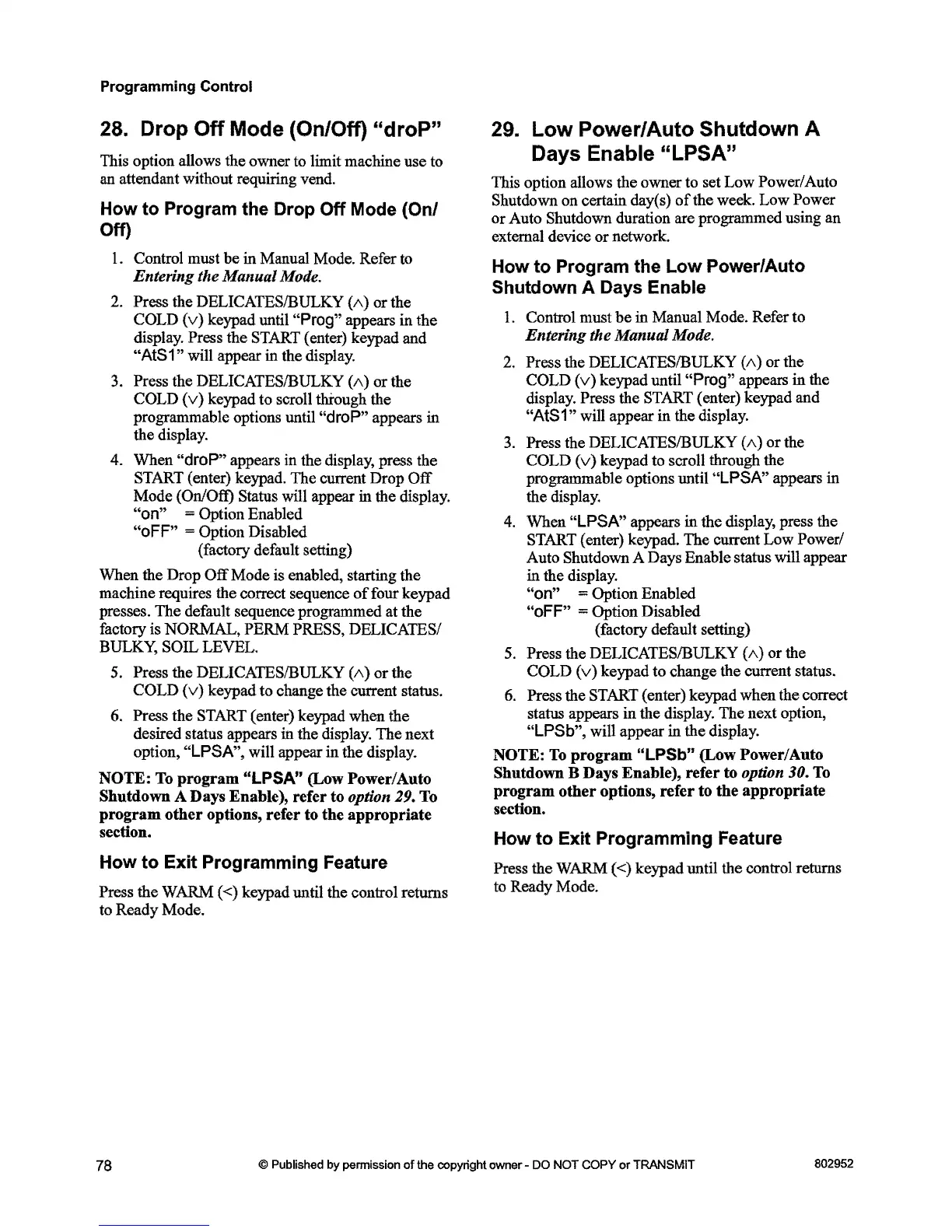 programmable options until "droP" appears in