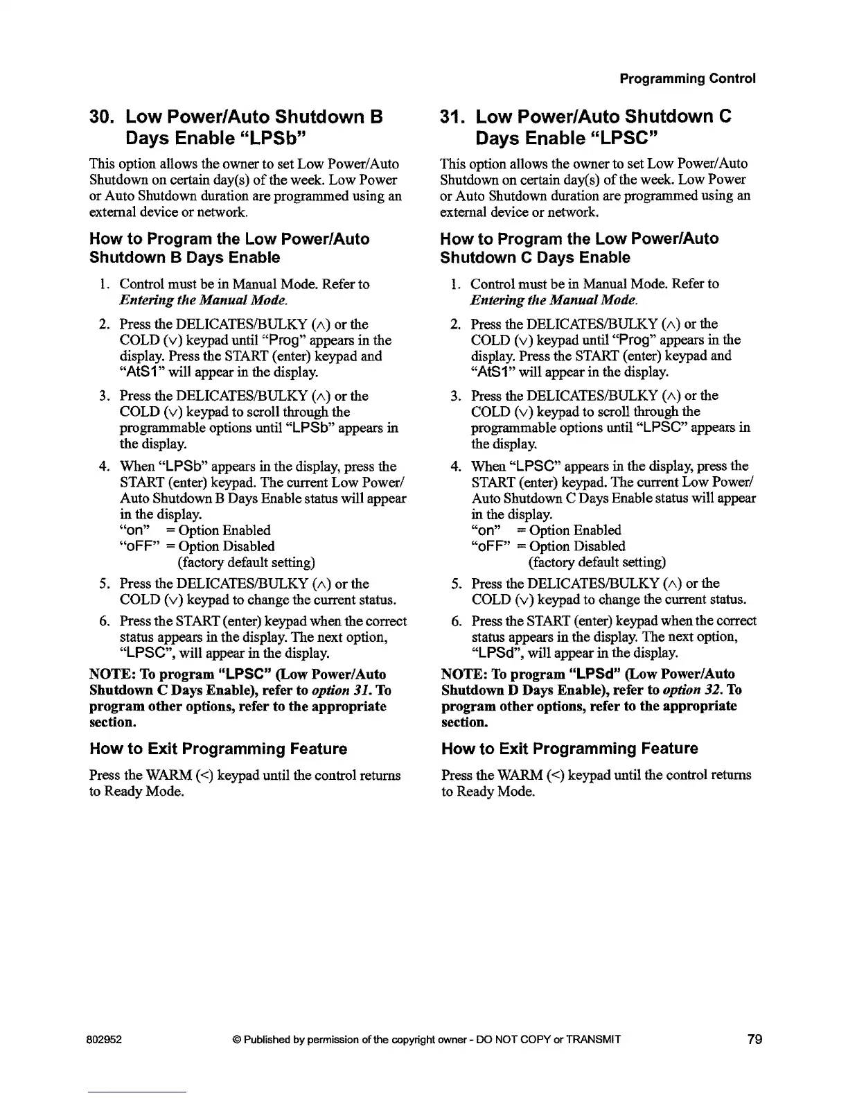 program other options, refer to the appropriate