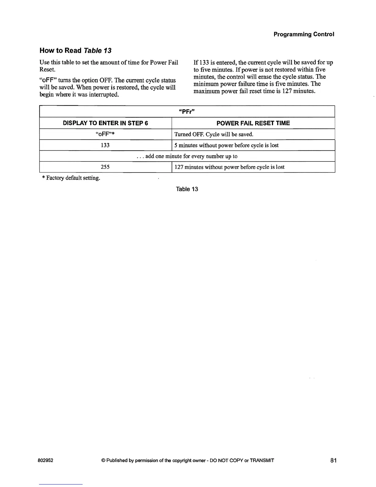 minutes without power before cycle is lost