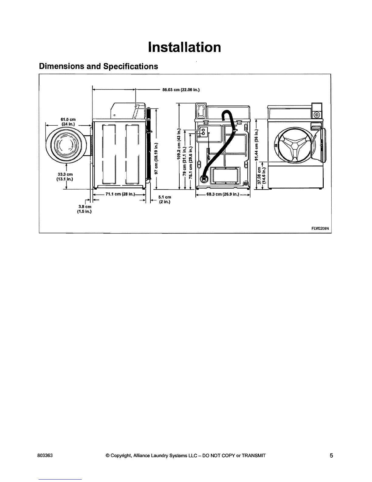 Alliance Laundry Systems FLW1526C - Installation; Dimensions and Specifications
