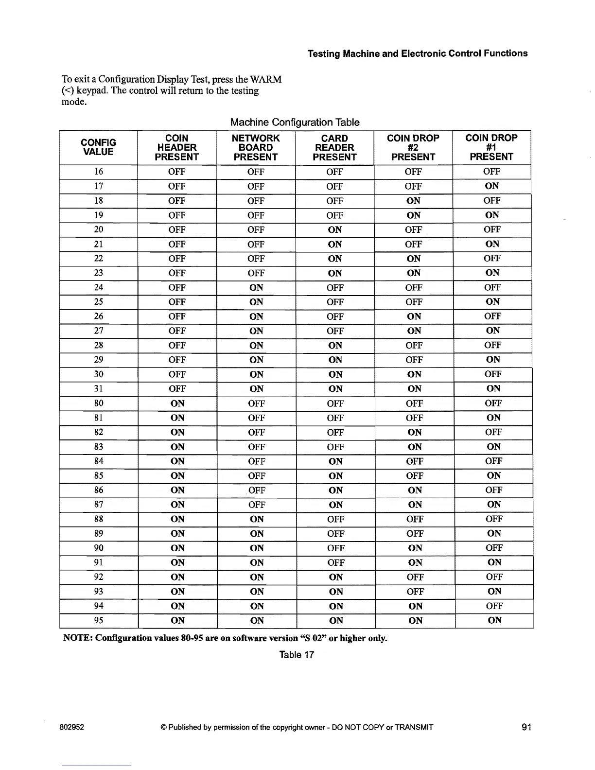 Machine Configuration Table