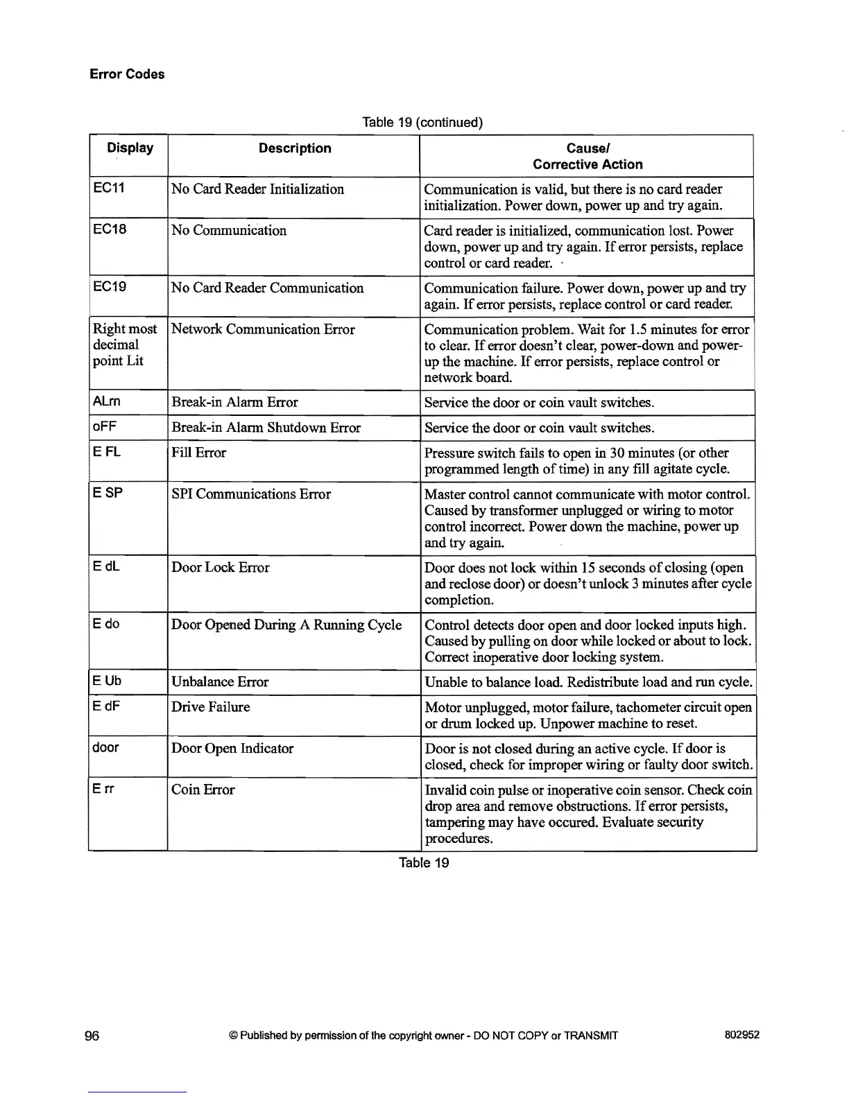 and reclose door) or doesn't unlock 3 minutes after cycle
