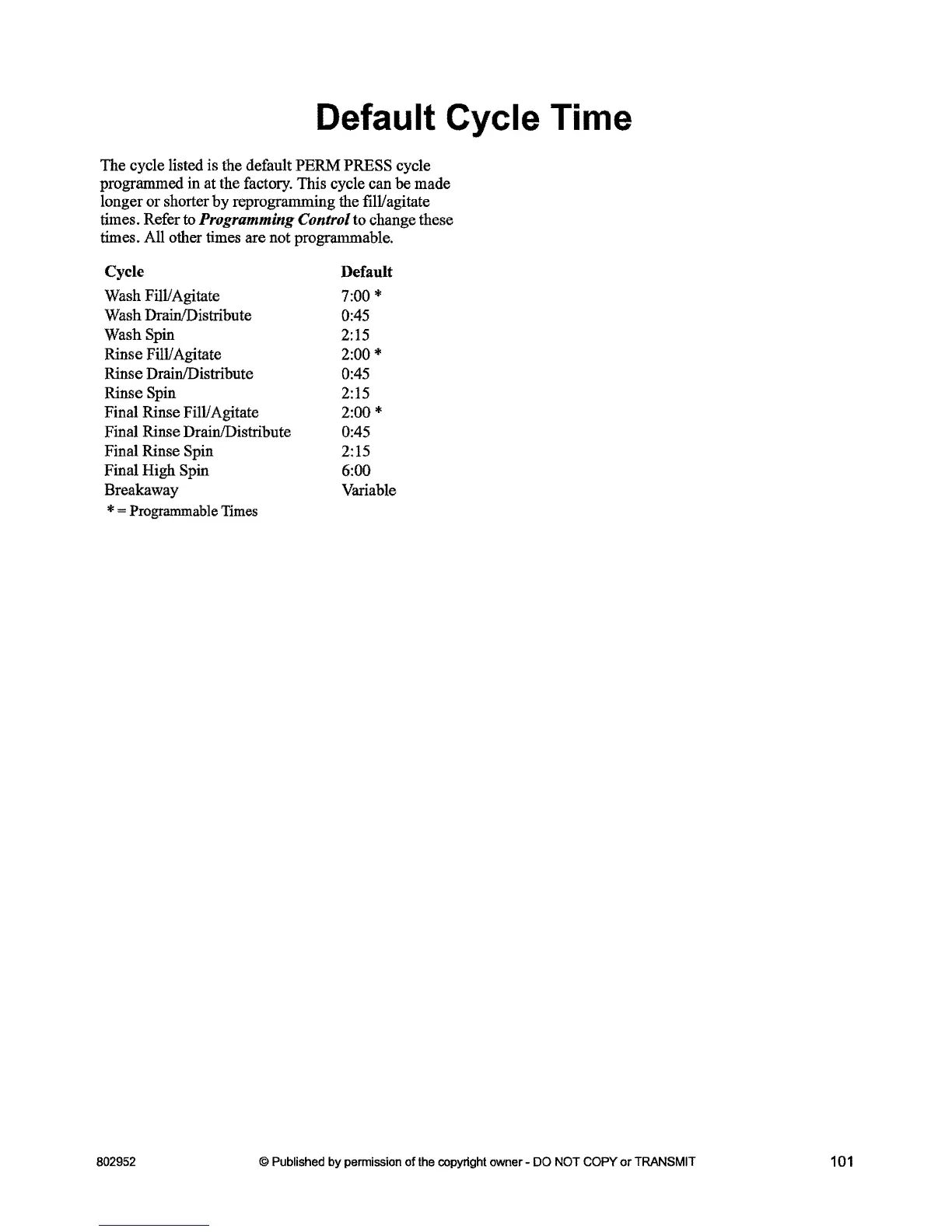times. Refer to Programming Control