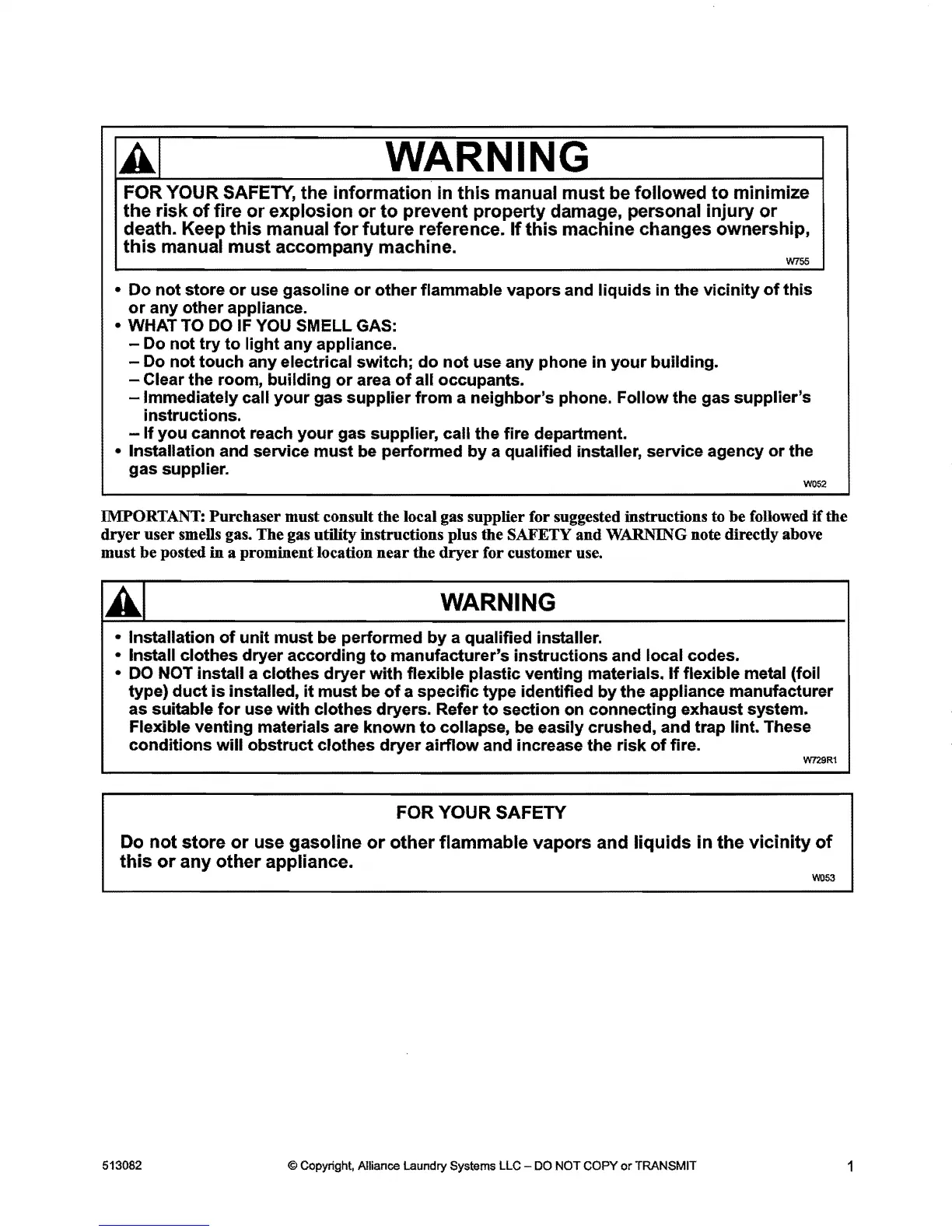 513082 © Copyright, Alliance Laundry Systems LLC - DO NOT