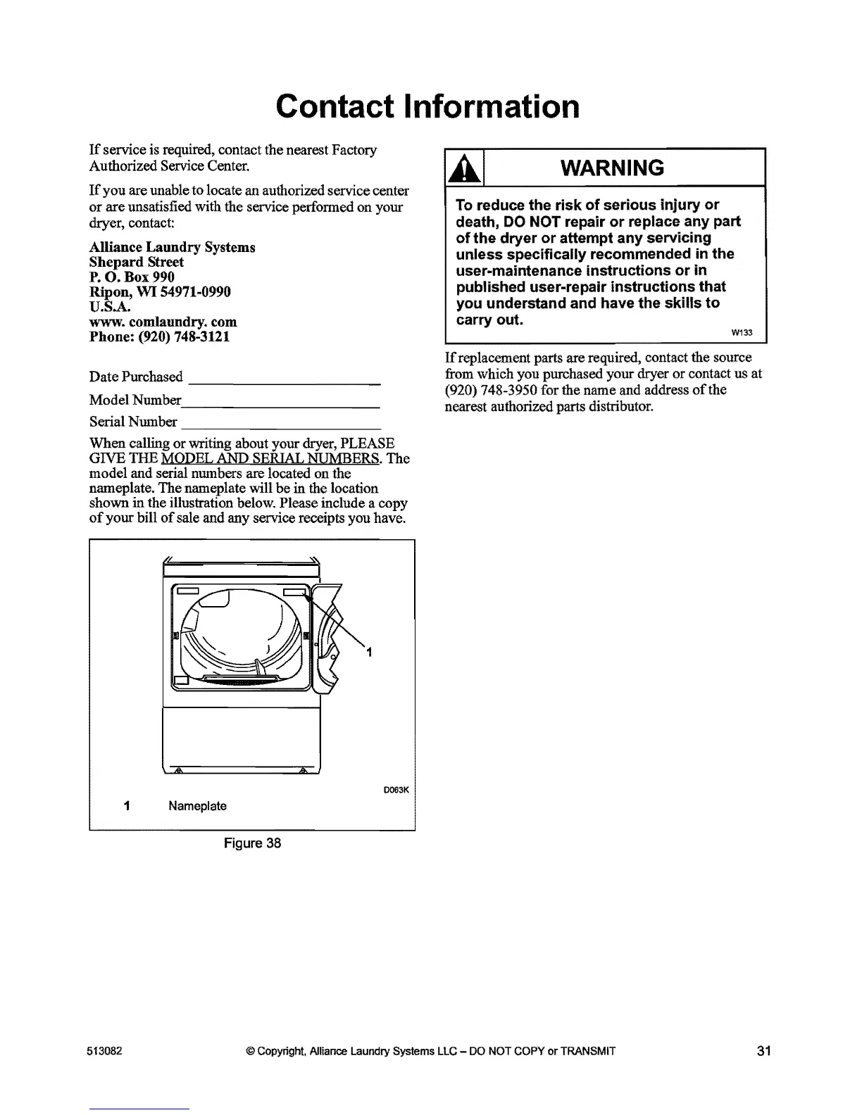 © Copyright, Alliance Laundry Systems LLC - DO NOT COPY