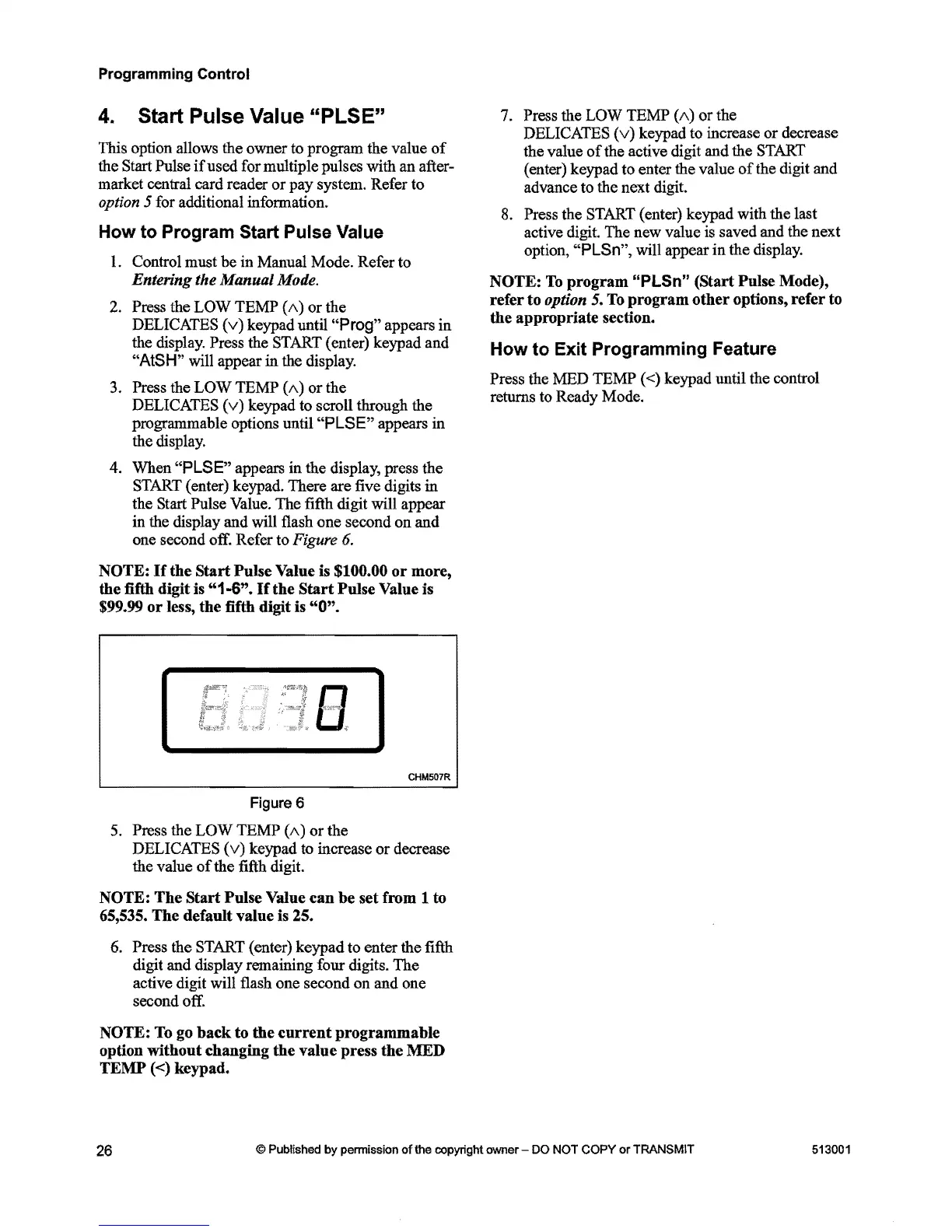 the Start Pulse Value. The fifth digit will appear
