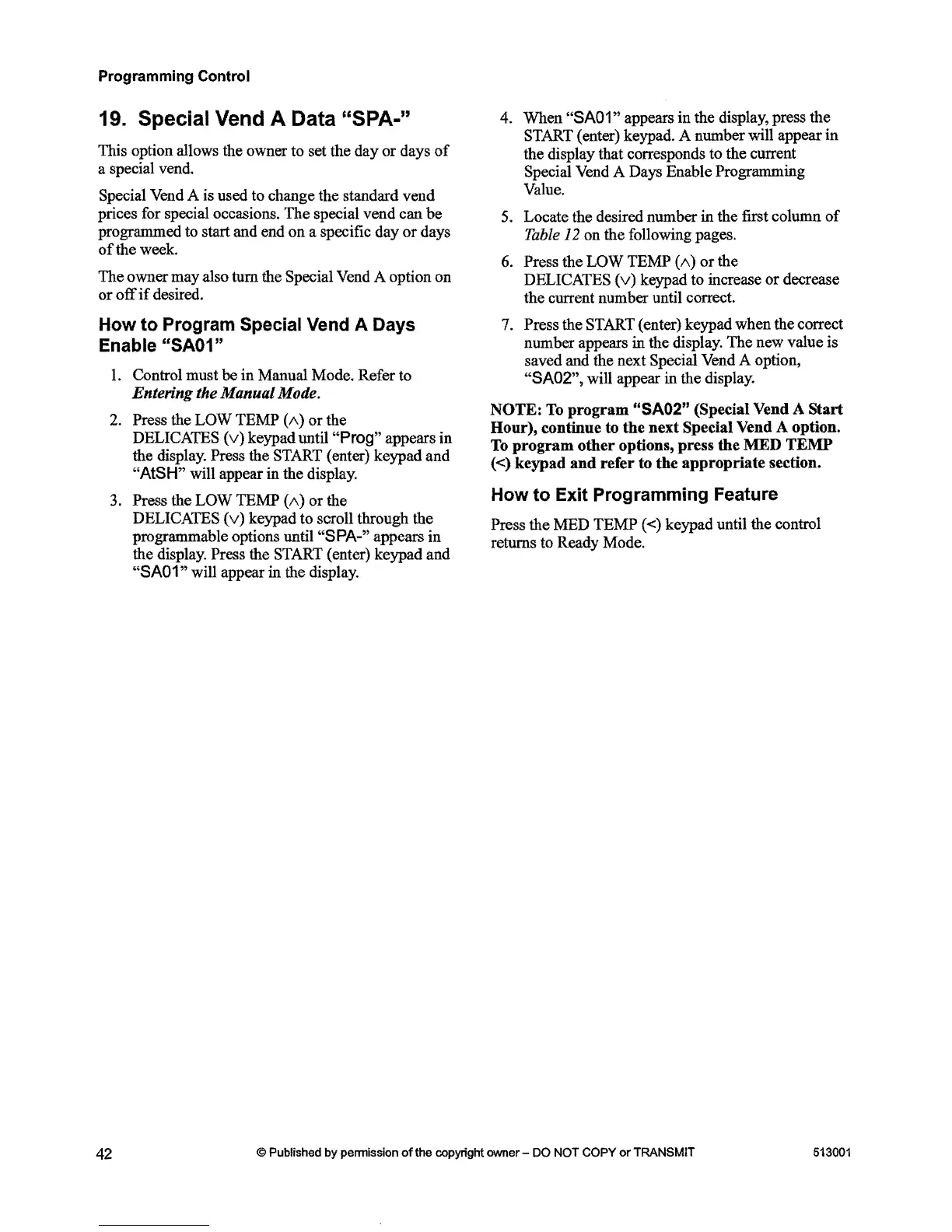 also tum the Special Vend A option