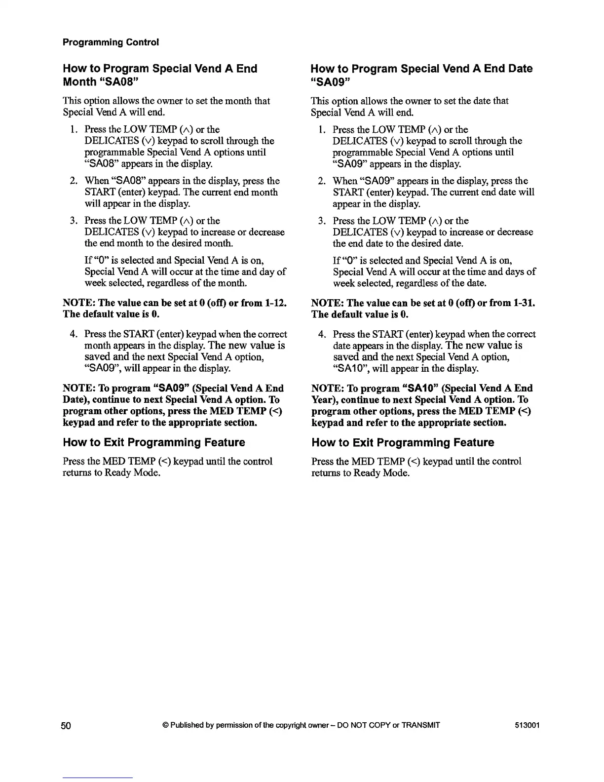 program "SA09" (Special Vend A