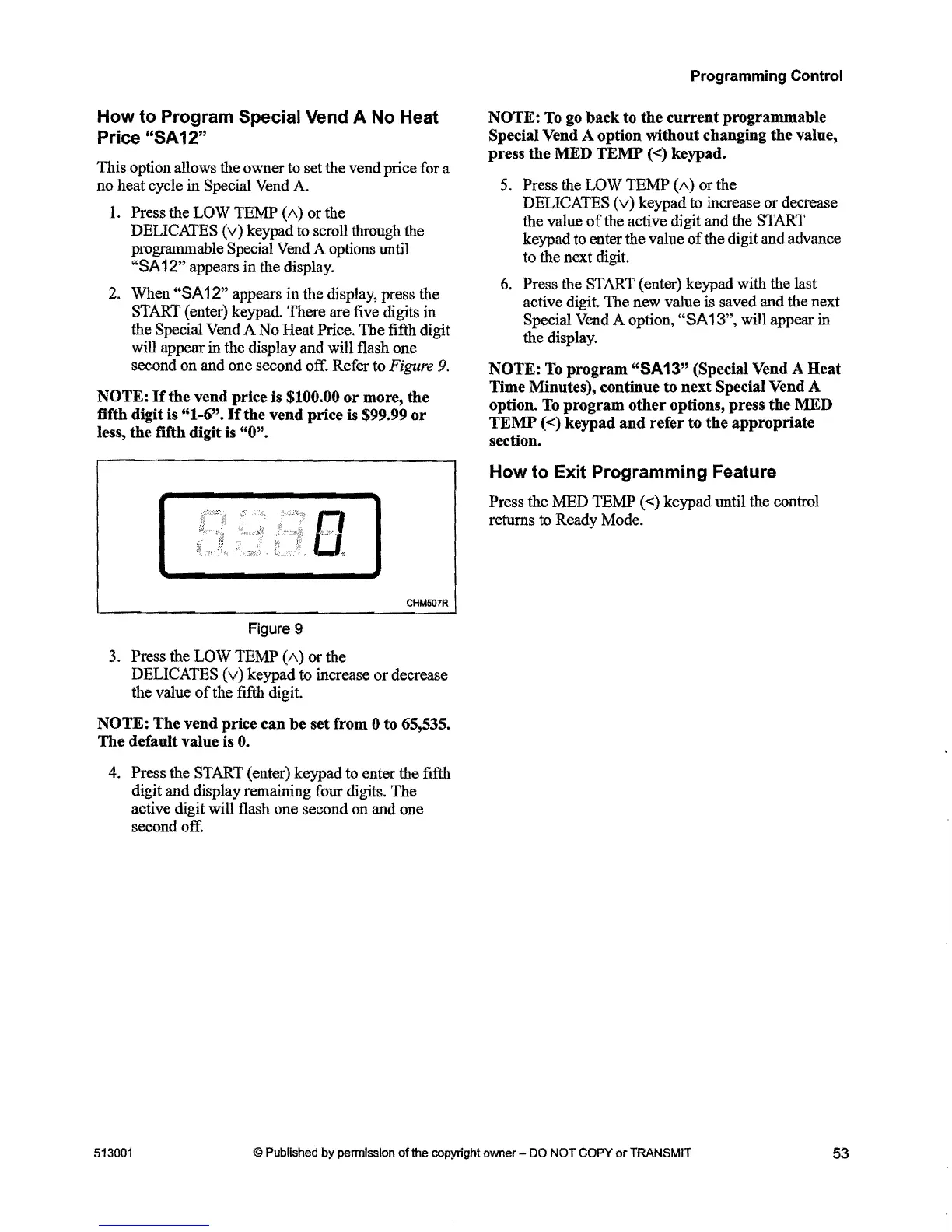 Program Special Vend A No Heat