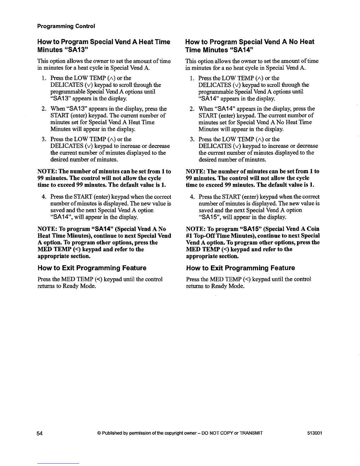 Program Special Vend A Heat Time How