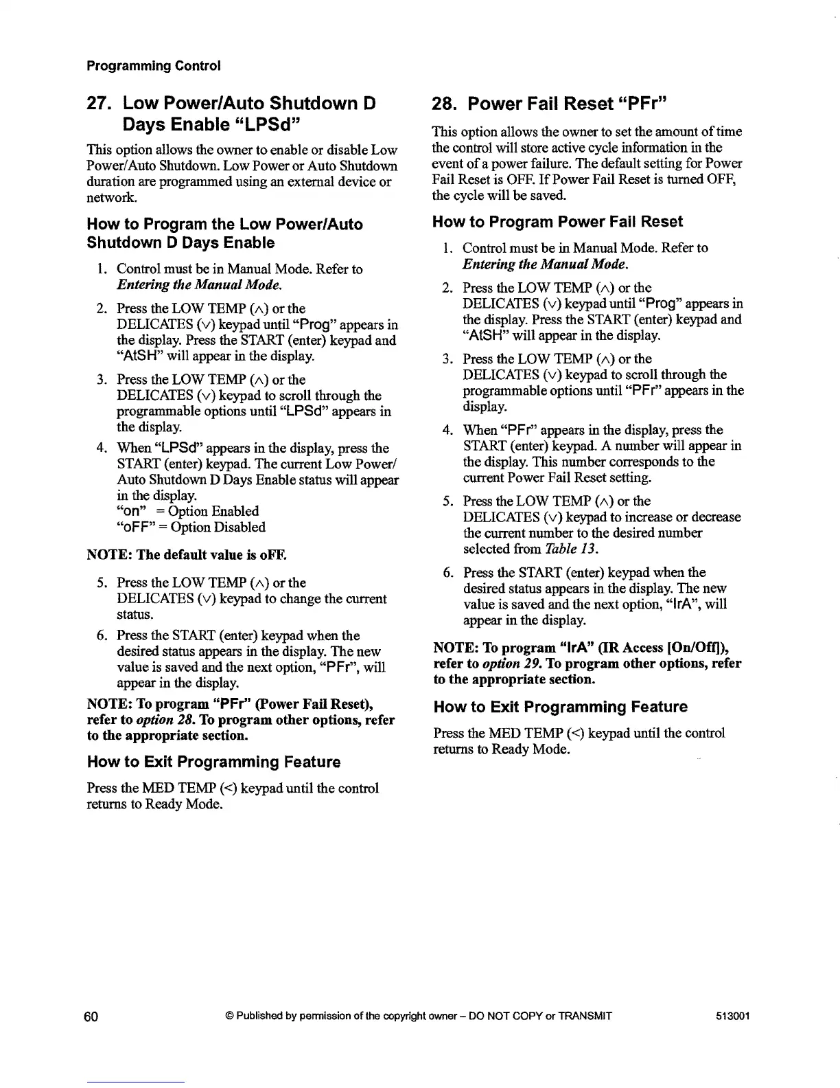 programmable options until "PFr" appears in the