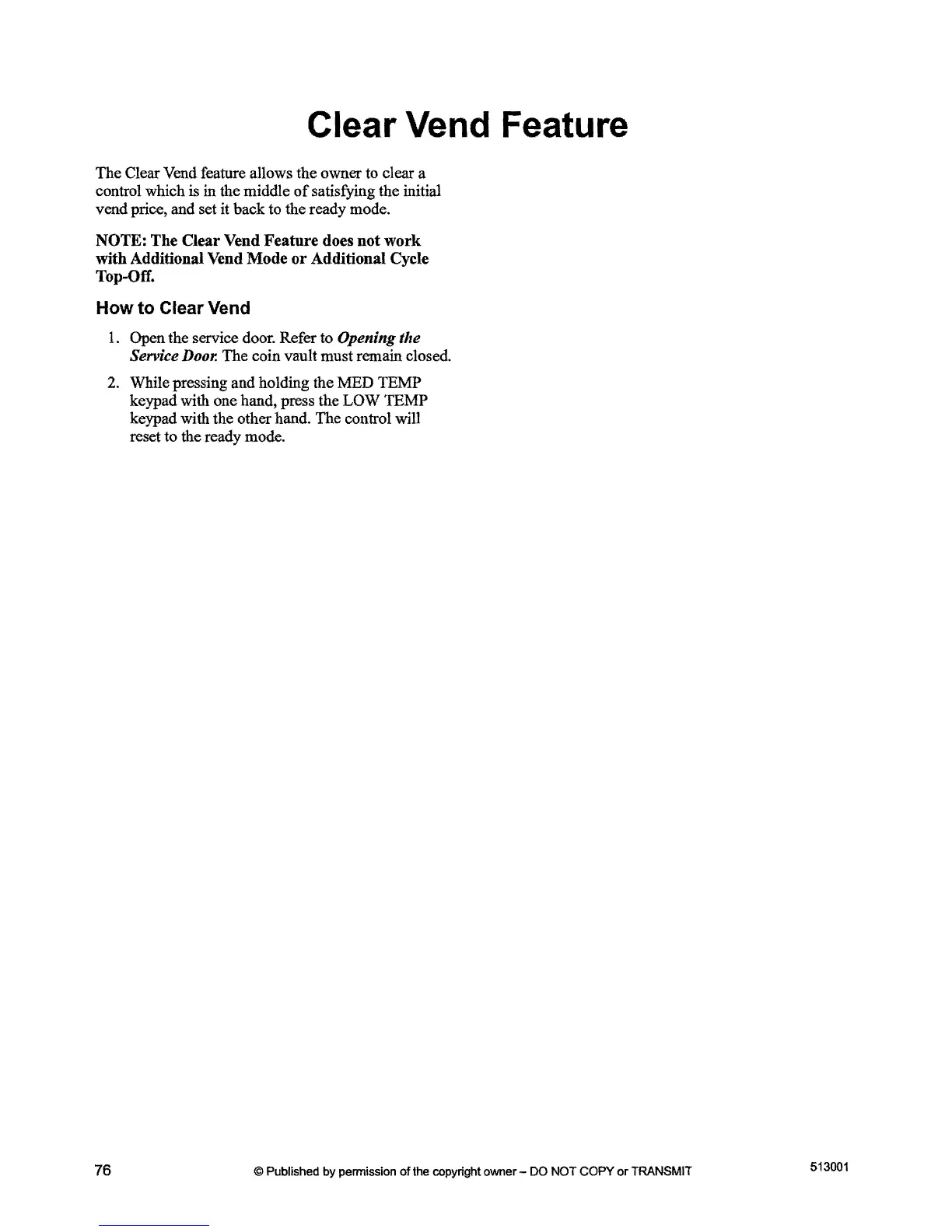 The Clear Vend feature allows the owner to clear a