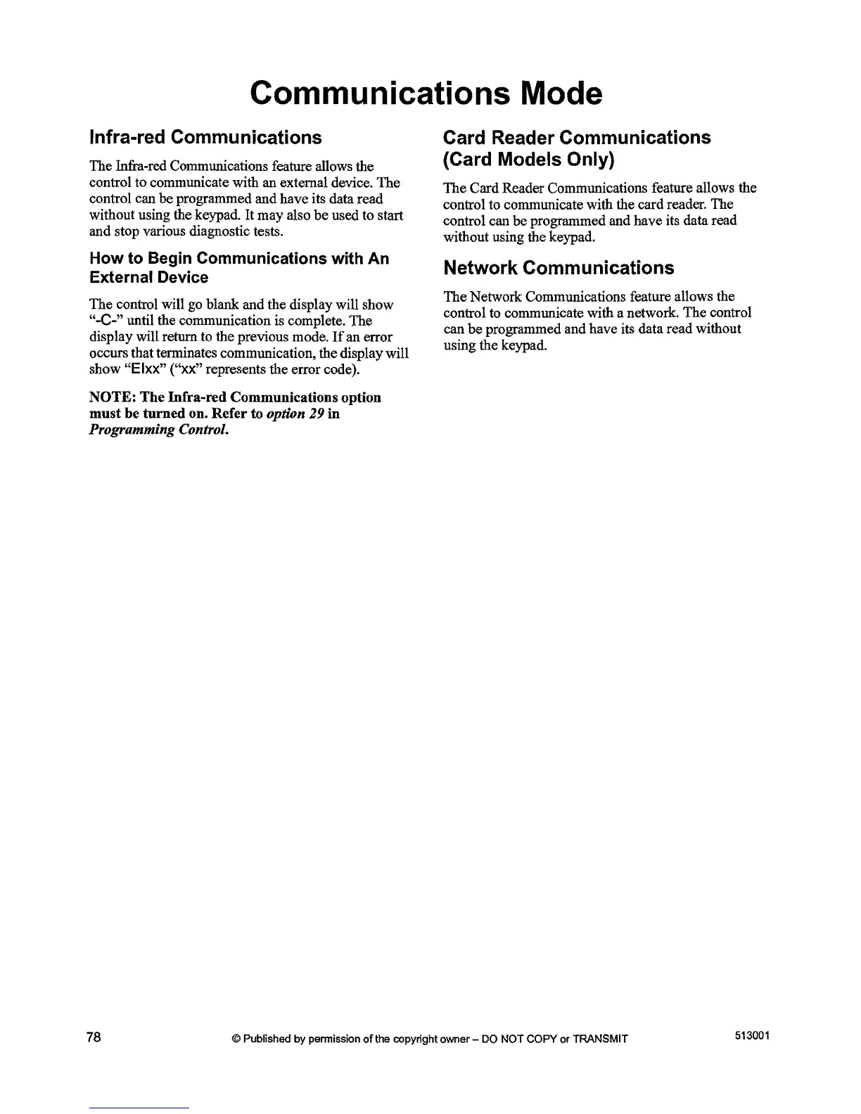 NOTE: The Infra-red Communications option
