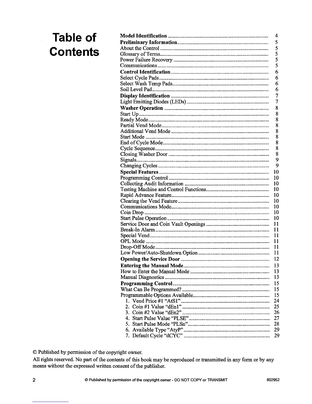 Programmable Options Available.........................................................